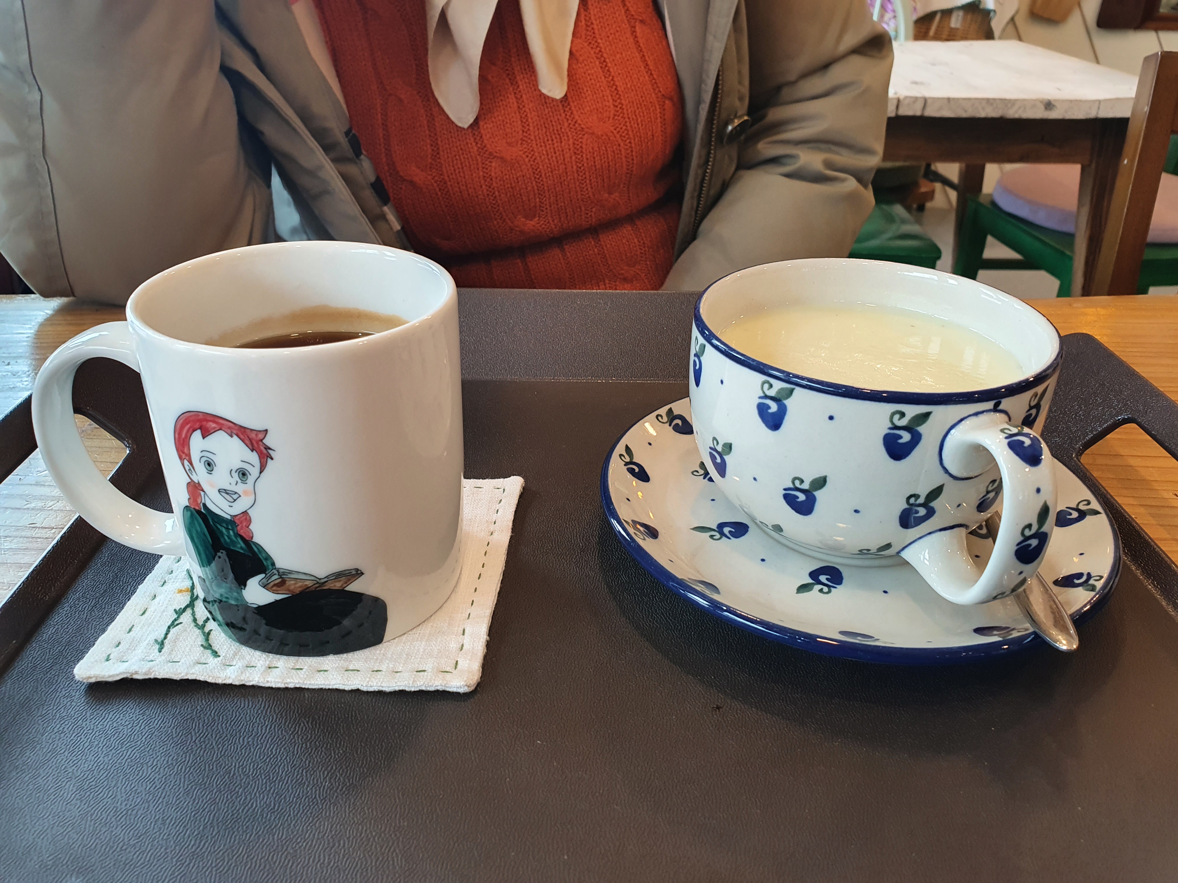 직접 그린 듯한 빨간 머리 앤의 그림이 담긴 머그컵과 손공예로 만든 듯한 티코스트가 정겨워서 커피맛보다 더 큰 기쁨을 가져다주었다.