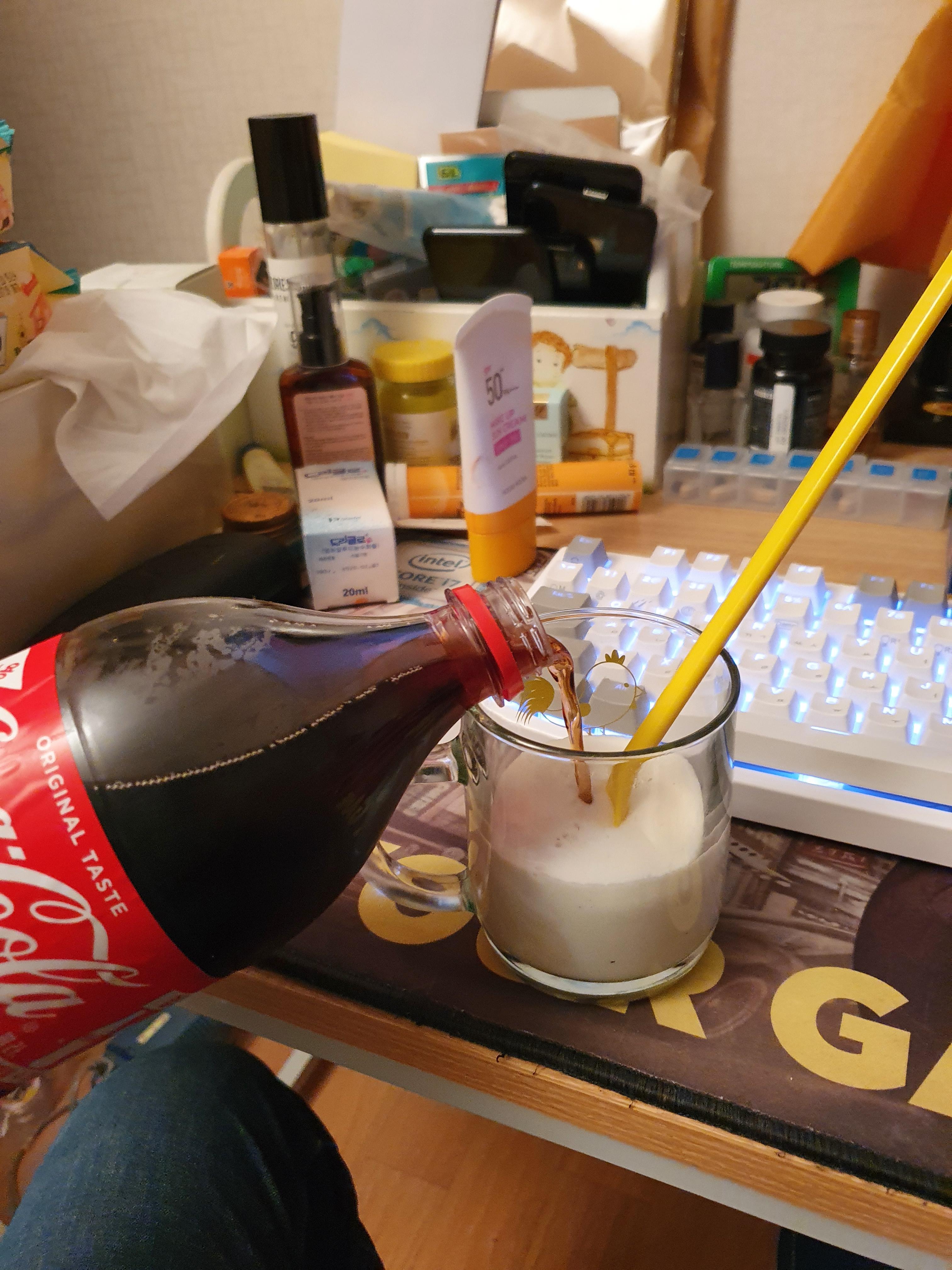 사실 레시피라고 하기에는 너무나도 간단한 우유와 콜라를 섞는 레시피를 공개합니다.