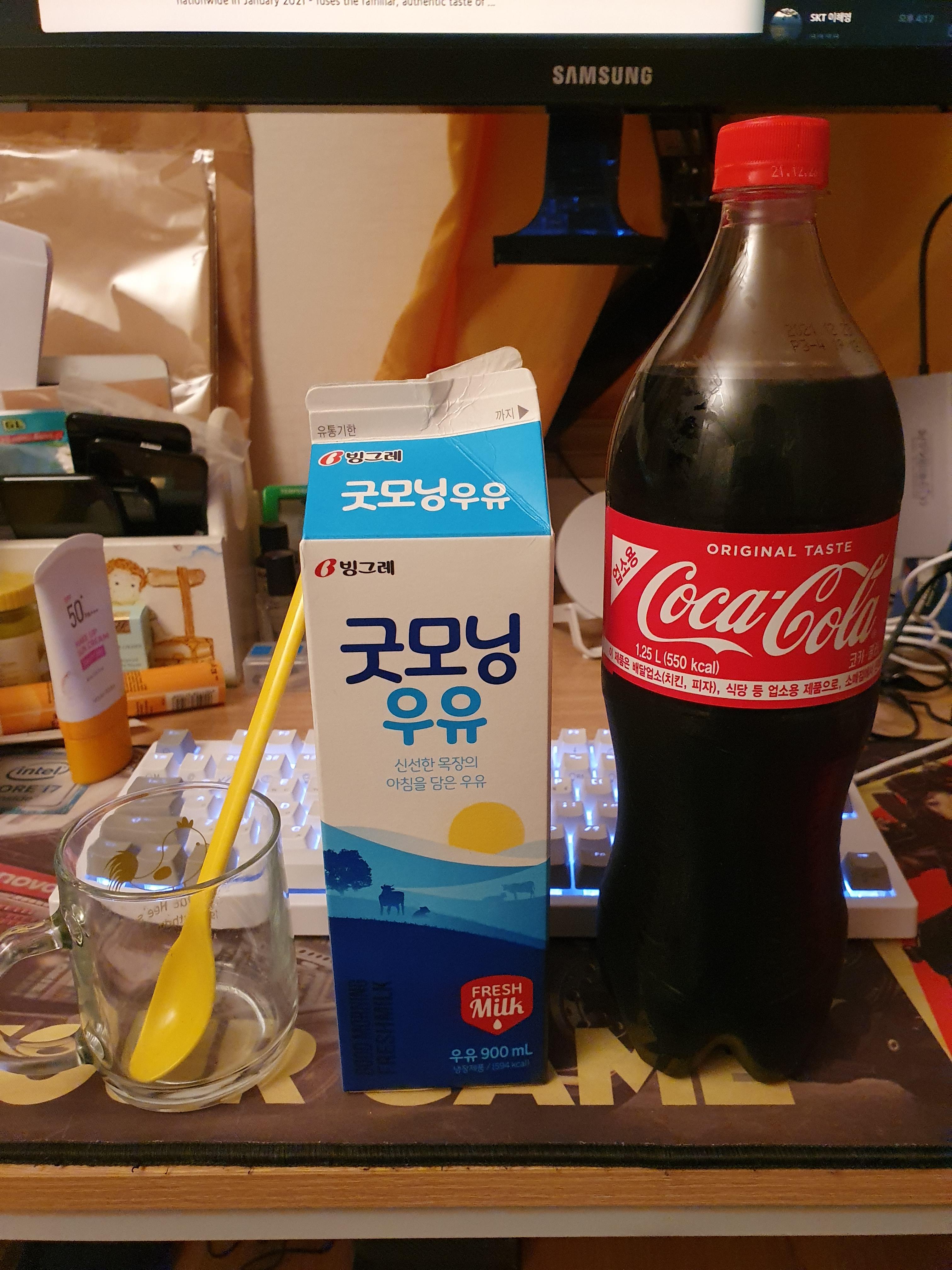 우유 유통기한이 다가오는데.. 그냥 마시기는 싫고, 냉장고에 콜라가 있어서...