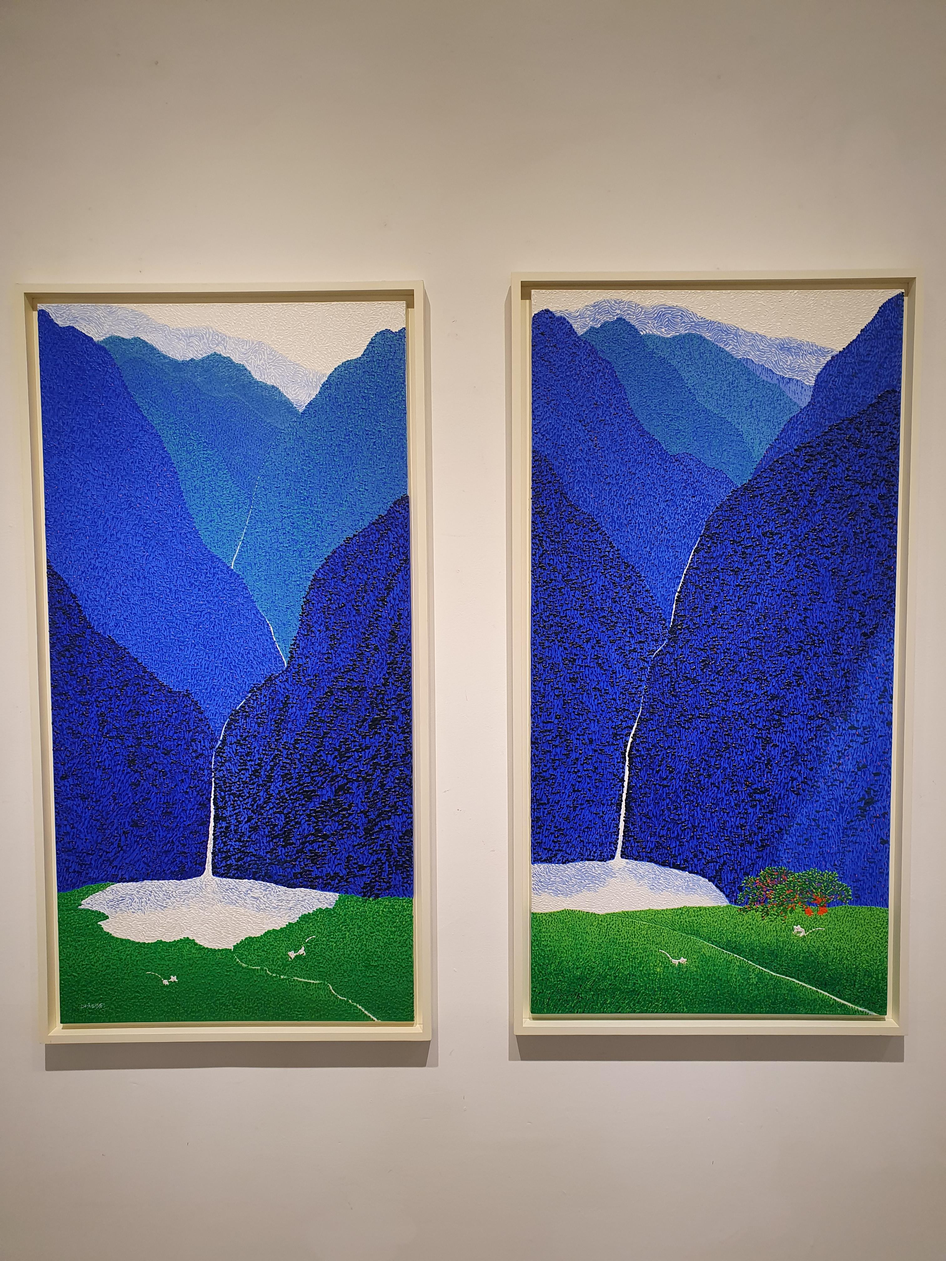 강렬한 파란색과 물의 흐름, 풀, 그리고 백호까지 꽤 인상적인 또 다른 작품들.