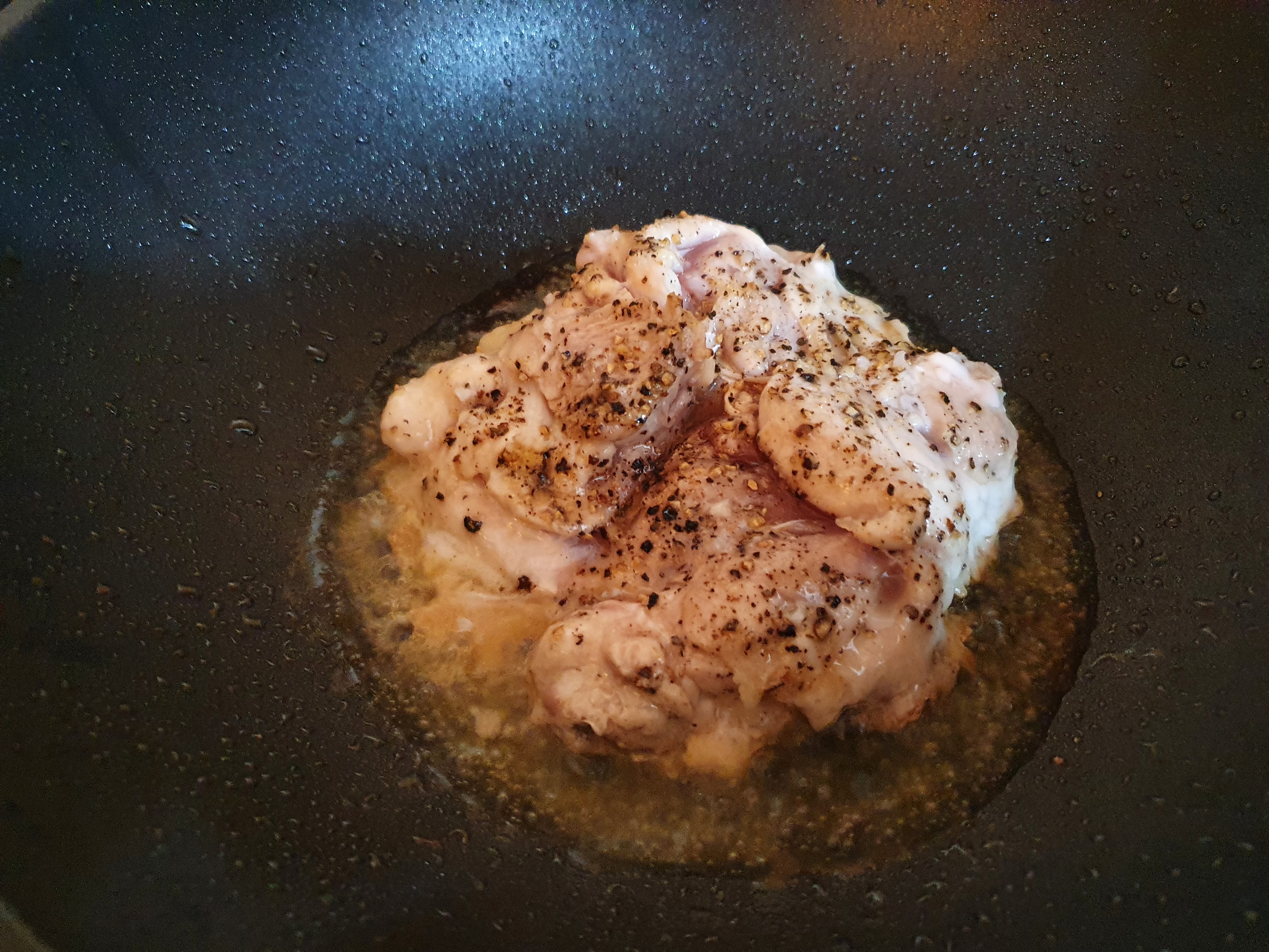 한쪽에는 소금 한꼬집과 통후추를 쉐킷쉐킷 해준다.