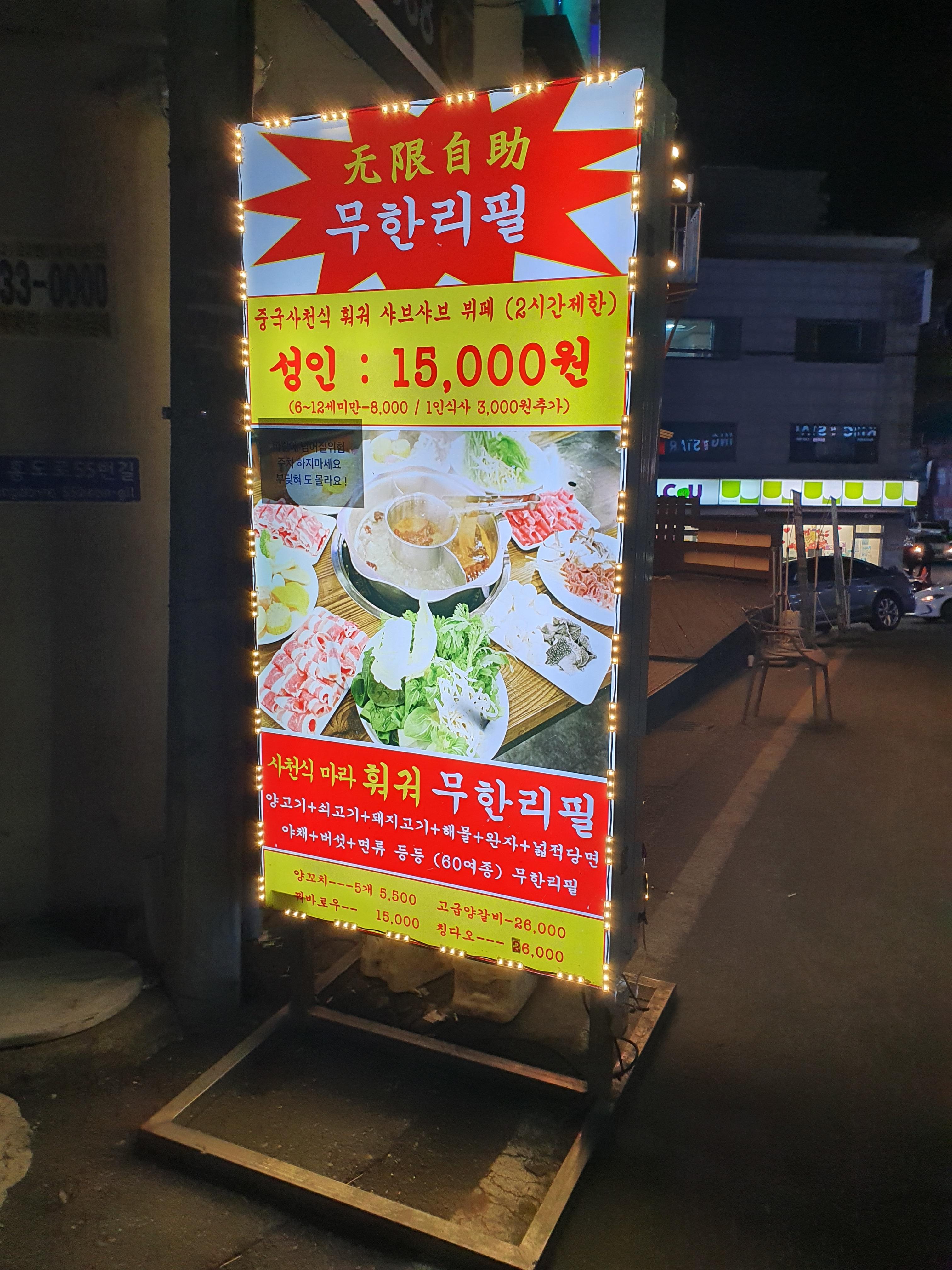 형네와 함께 한남대의 훠궈 무한리필 집에 갔다.