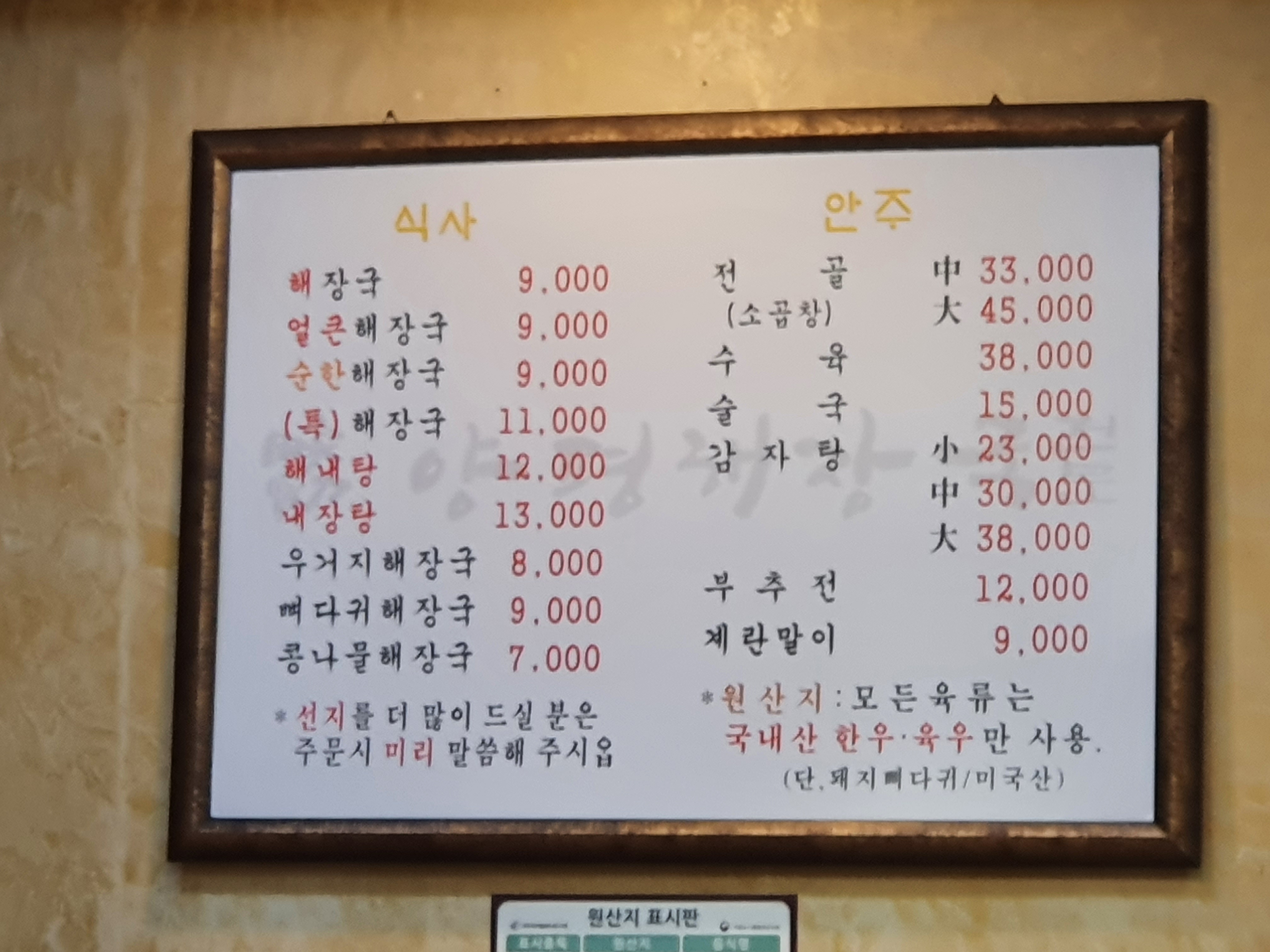 기본 해장국이 9000원으로 꽤 비싼 느낌이다.