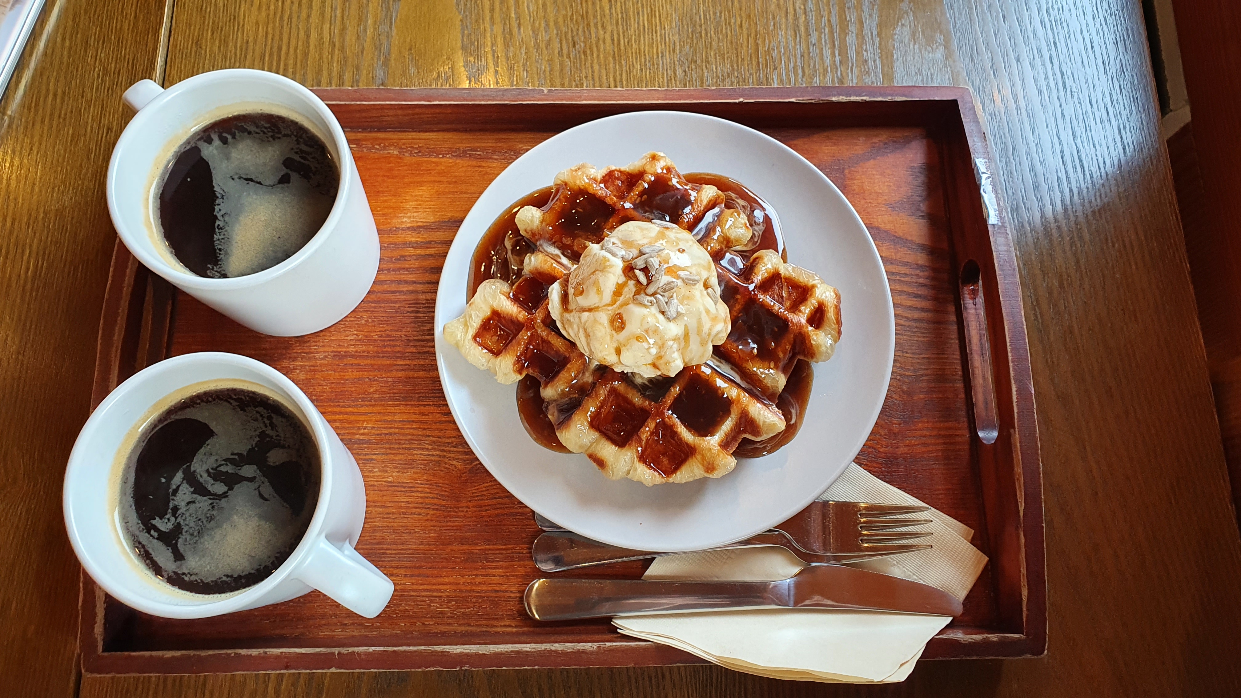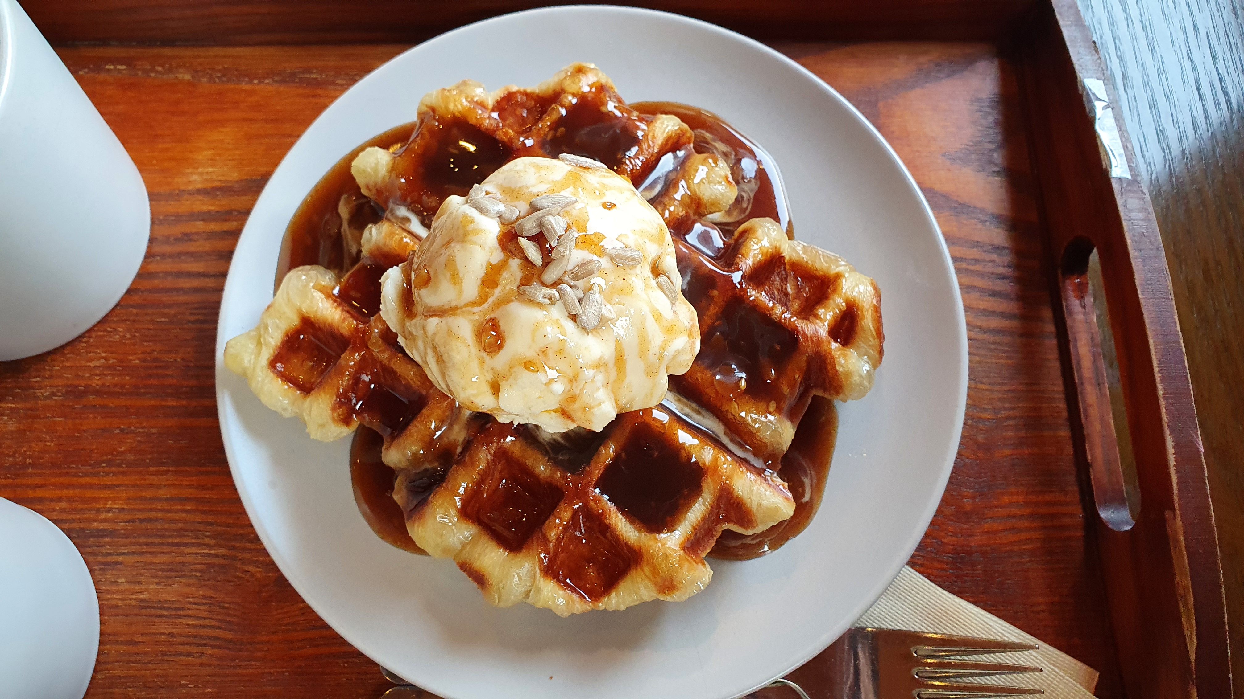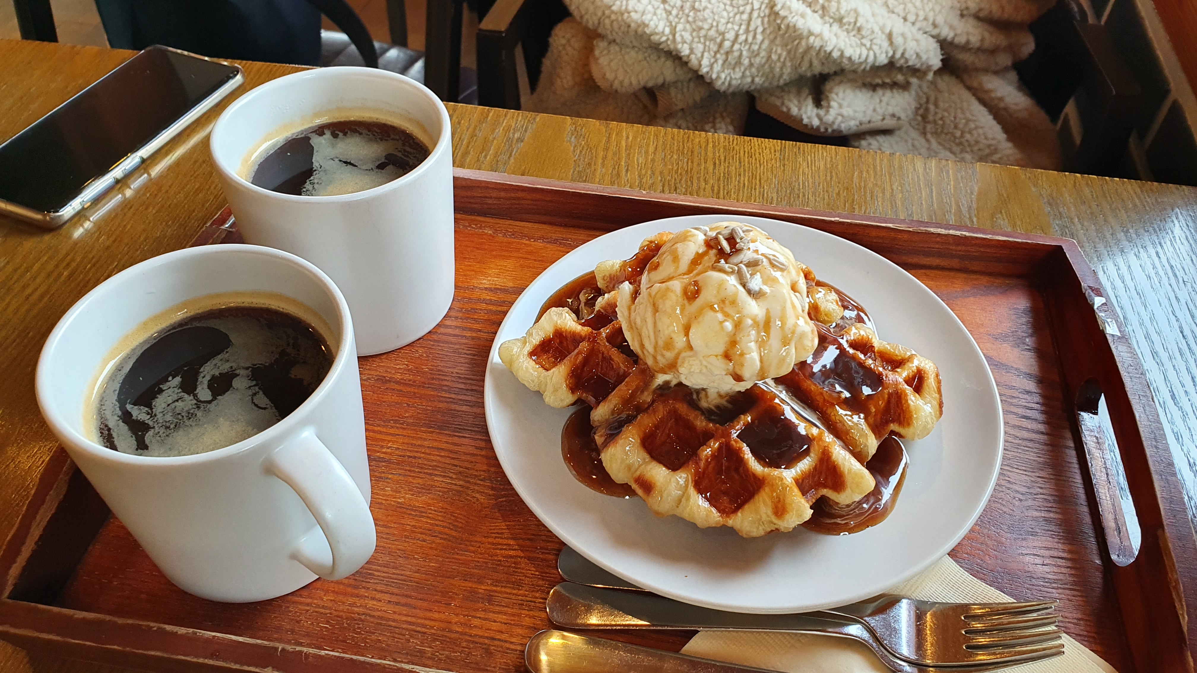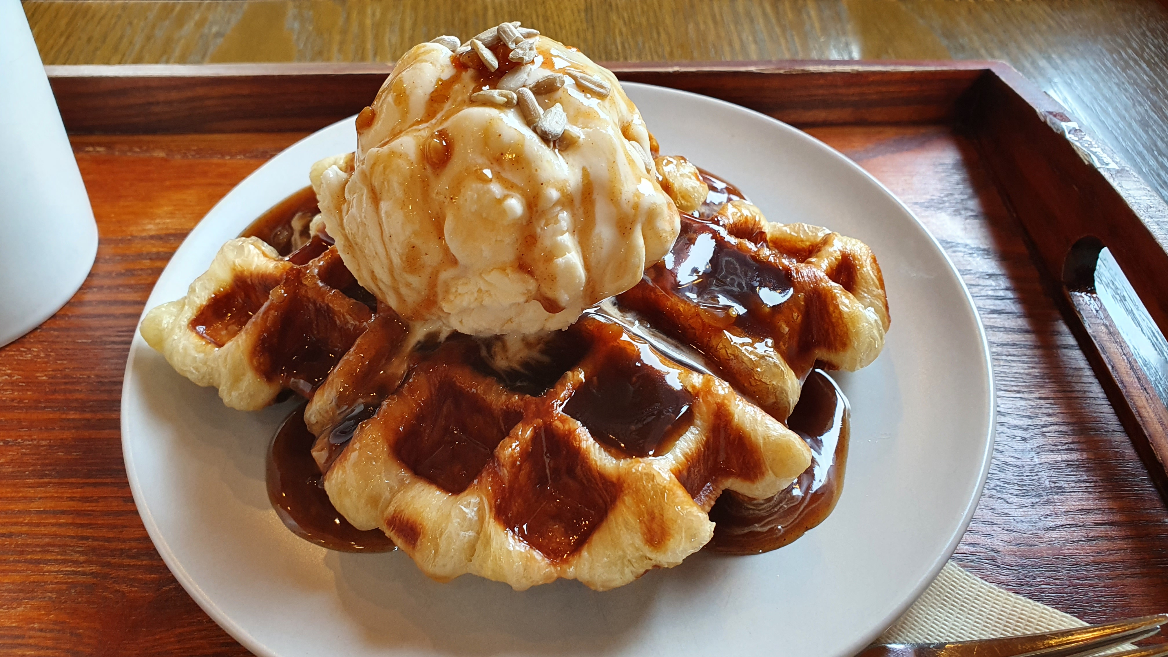 크로플 처음 먹어봤는데 일반 와플에 비해 조금 더 쫄똑하며 결이 느껴지는 그런 식감.