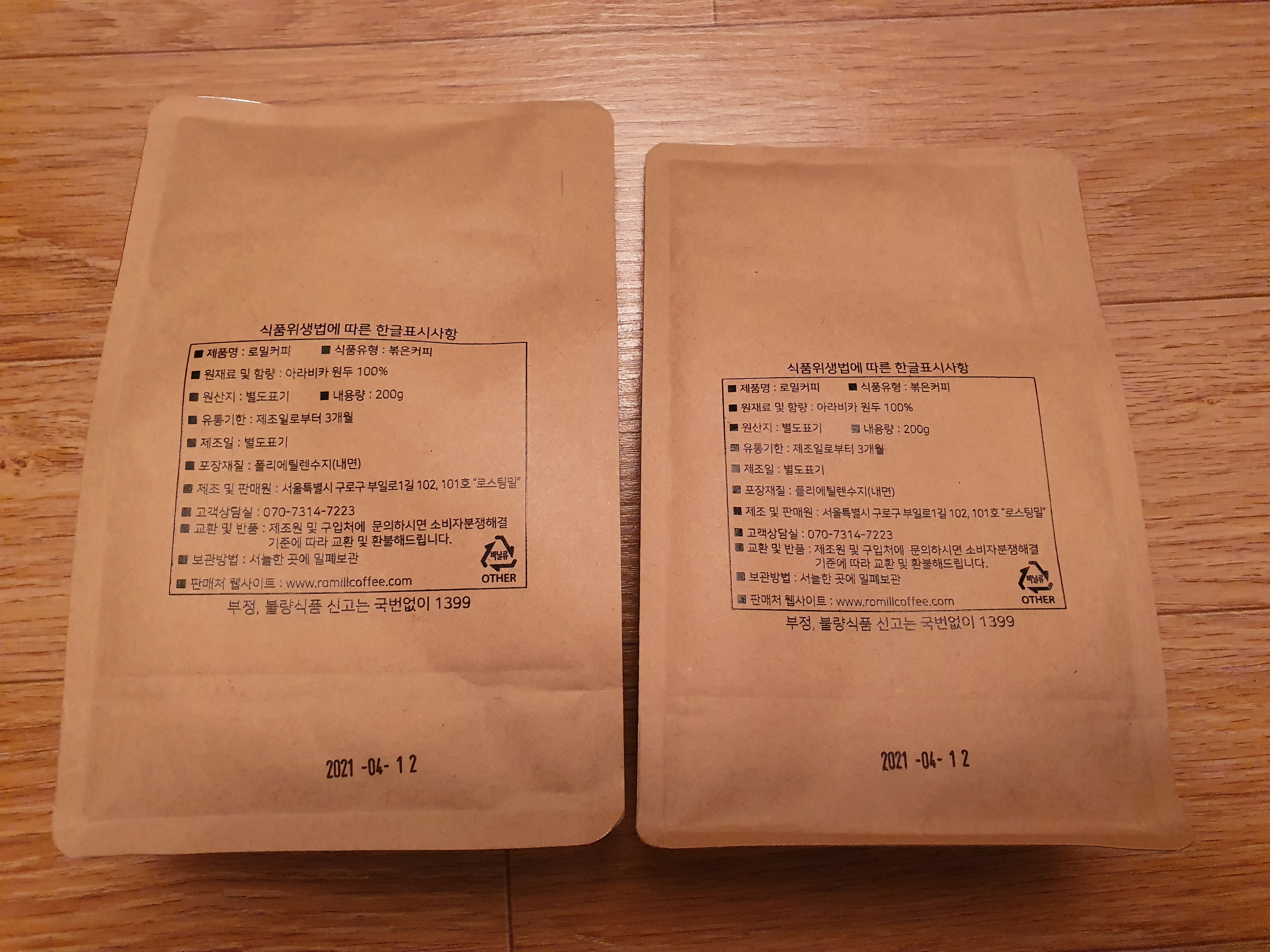 '인도네시아 만델링' 과 '에티오피아 예가체프 G2' 각 200g.