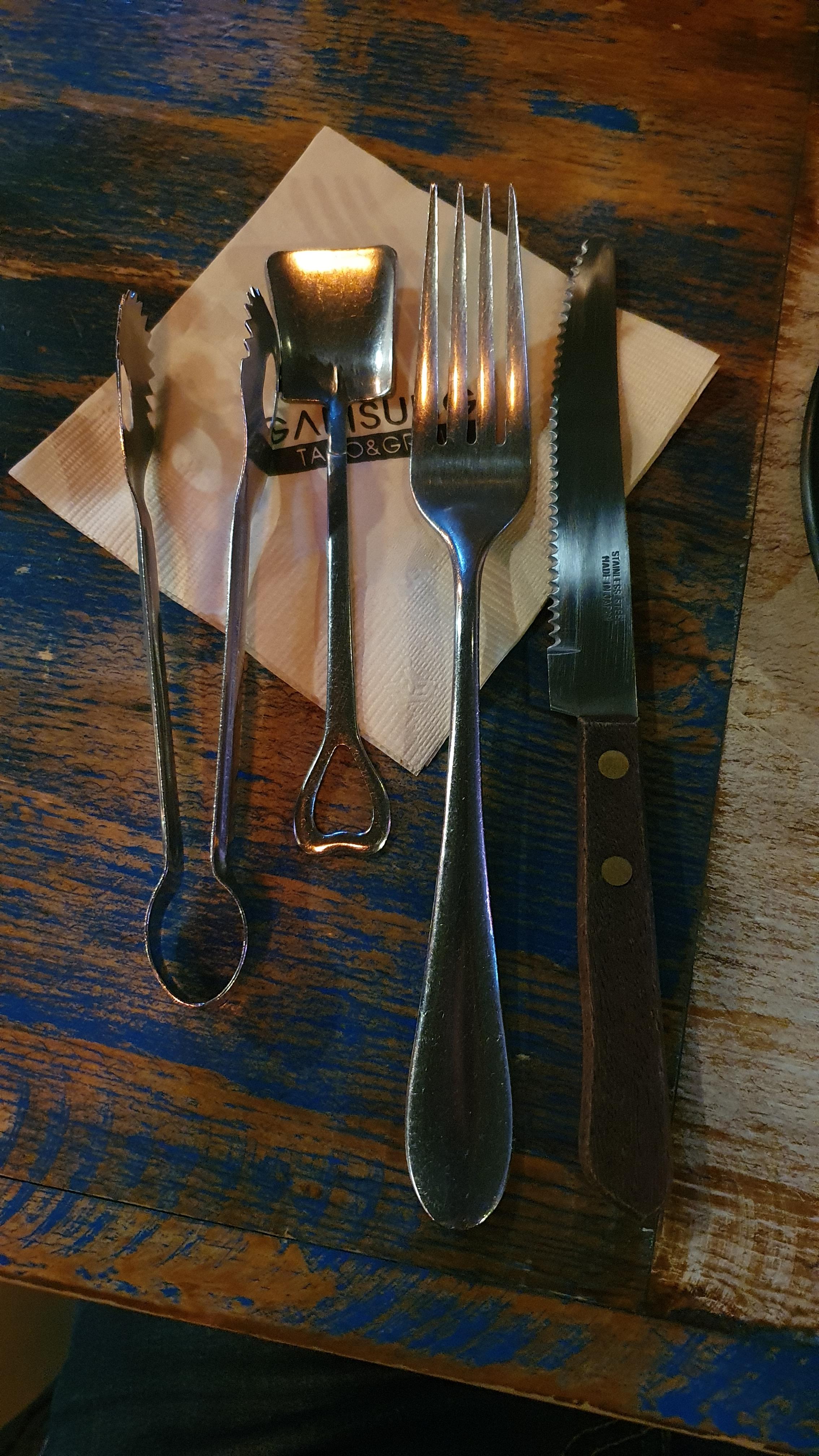 소스 뜨는 삽 모양 스푼이 인상적.