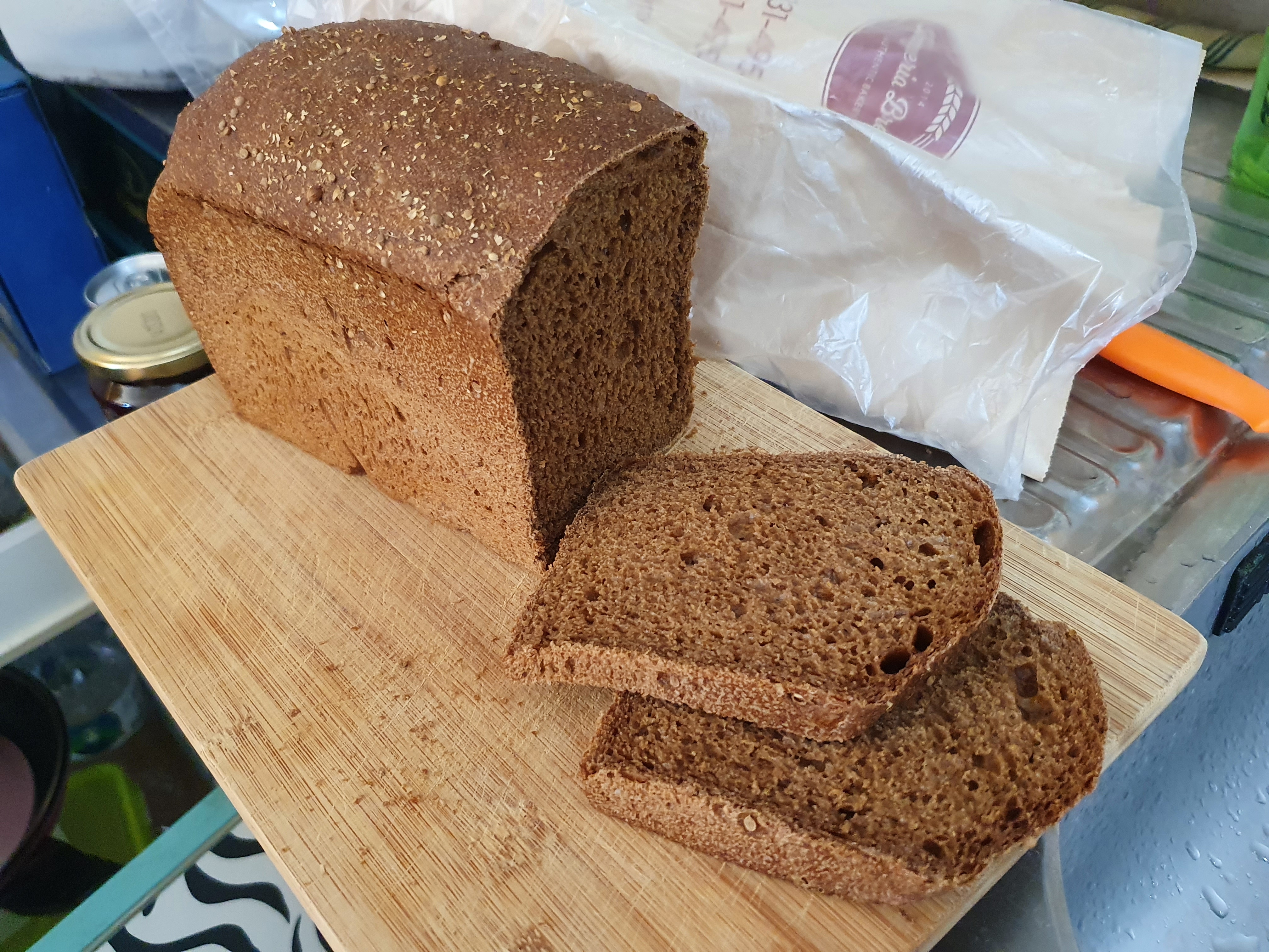 호밀 70% 로 꽤 딱딱하다. 빵칼로 자르면 정말 톱질하는 느낌을 받을 수 있다.