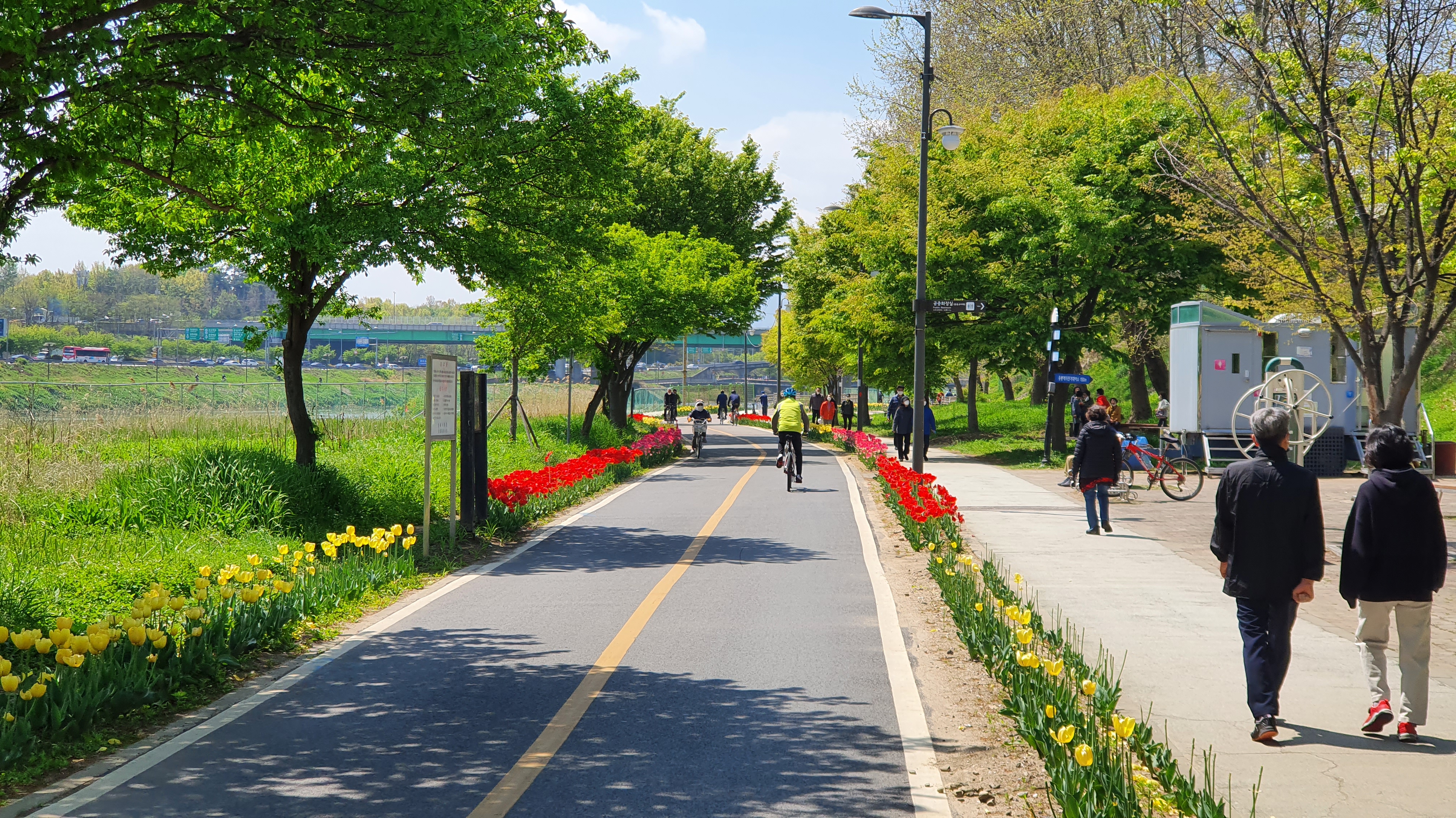 중랑천의 튤립들.