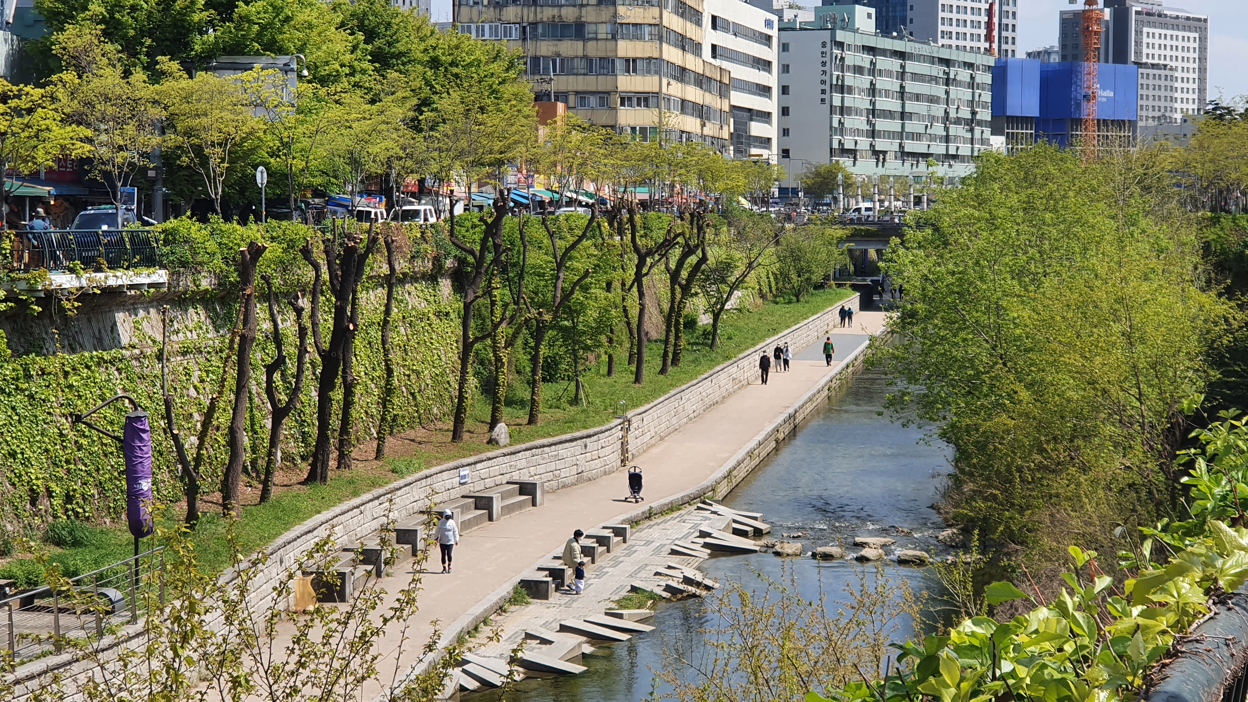 봄 맞이 이발한 청계천의 나무들.