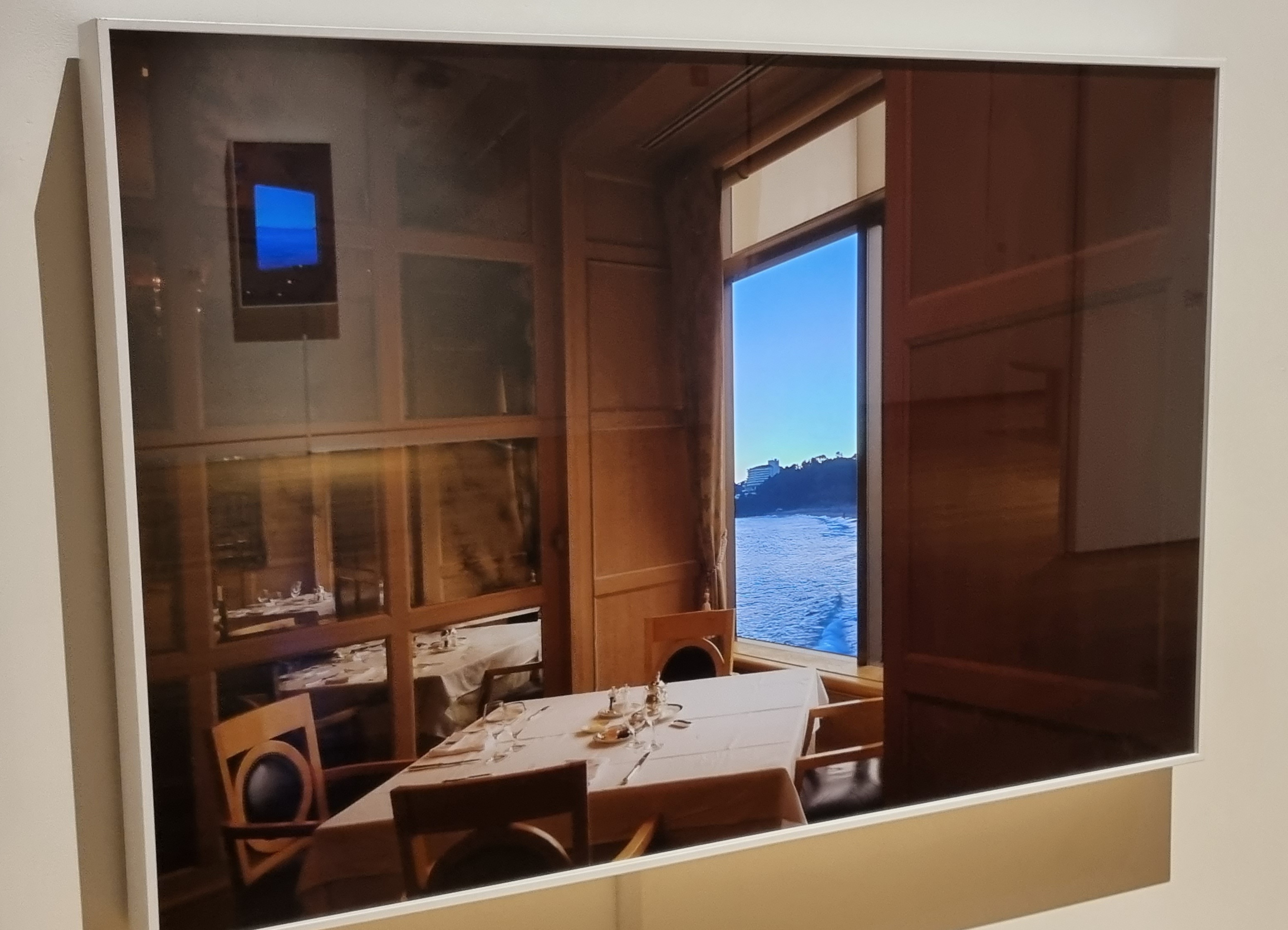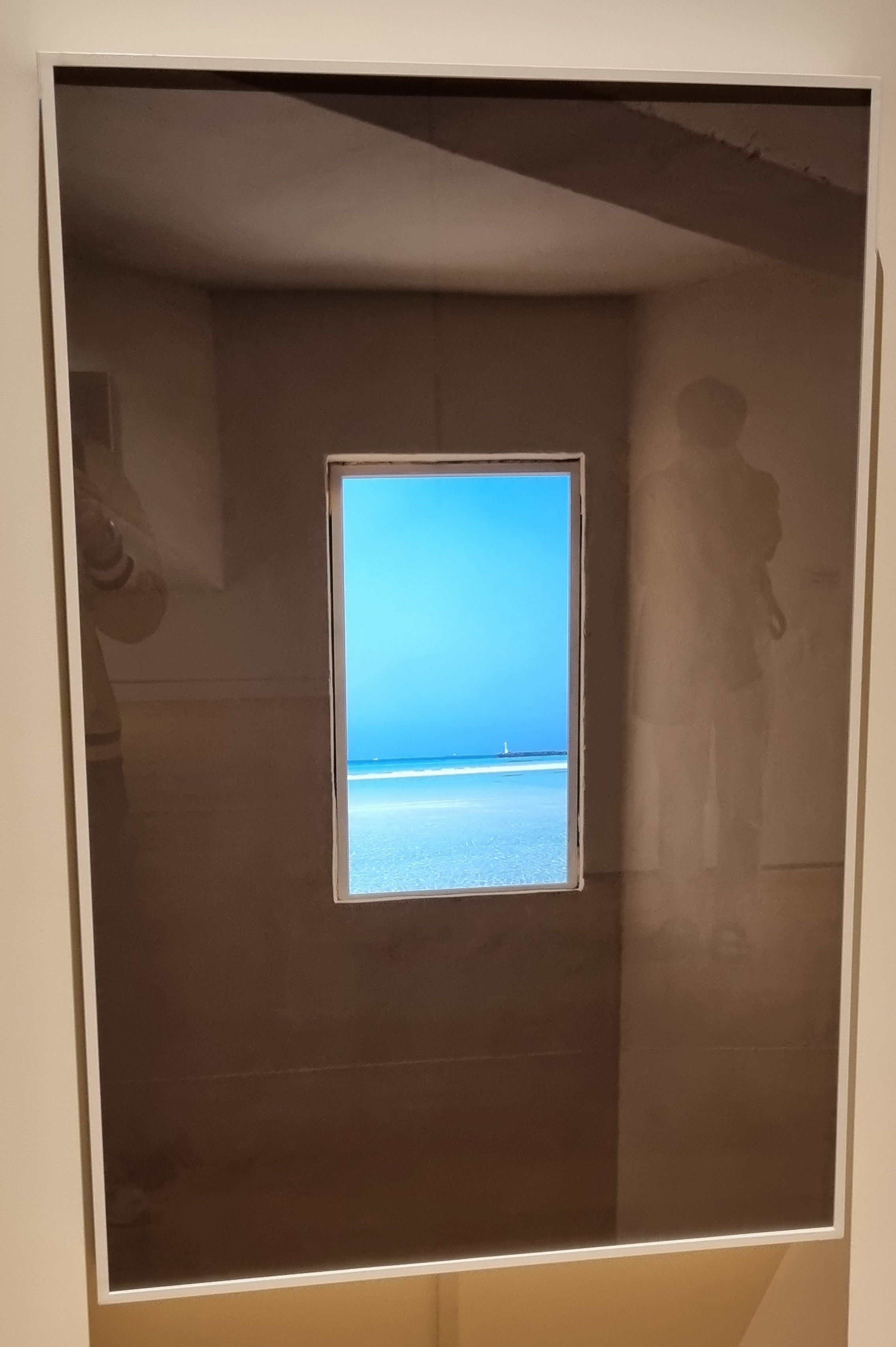 창문 너무로 파도치는 바다.