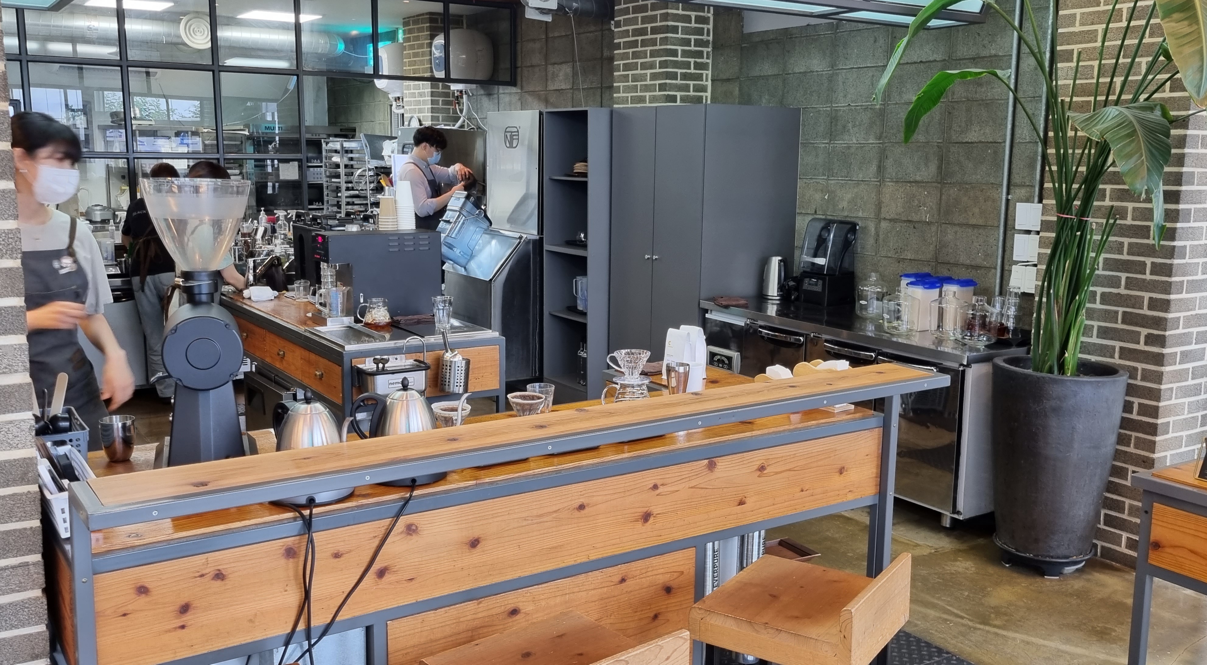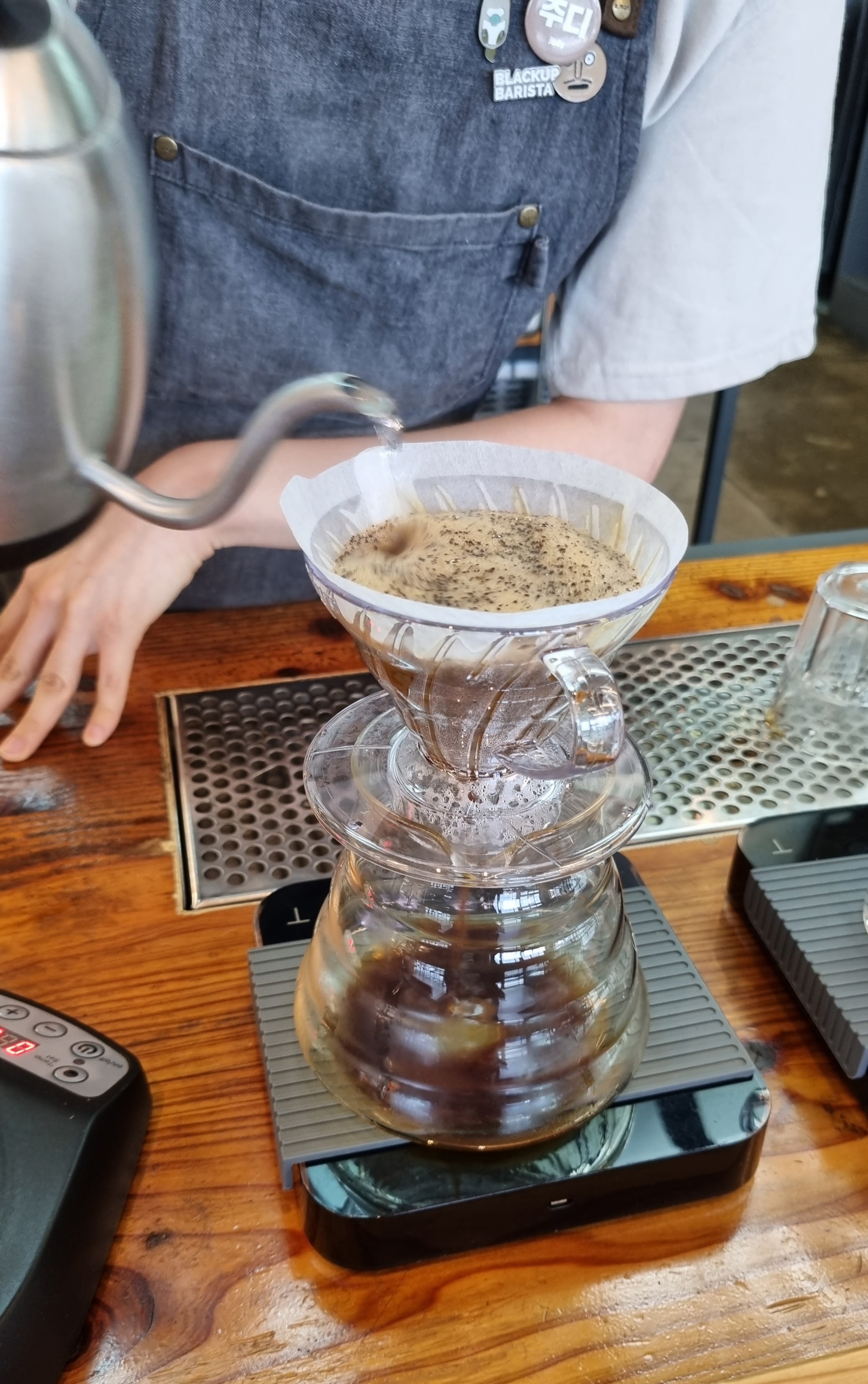 원두 뜸들이기도 하고, 드립해주고, 마지막 바리스타의 시음까지 한 후에 서빙.