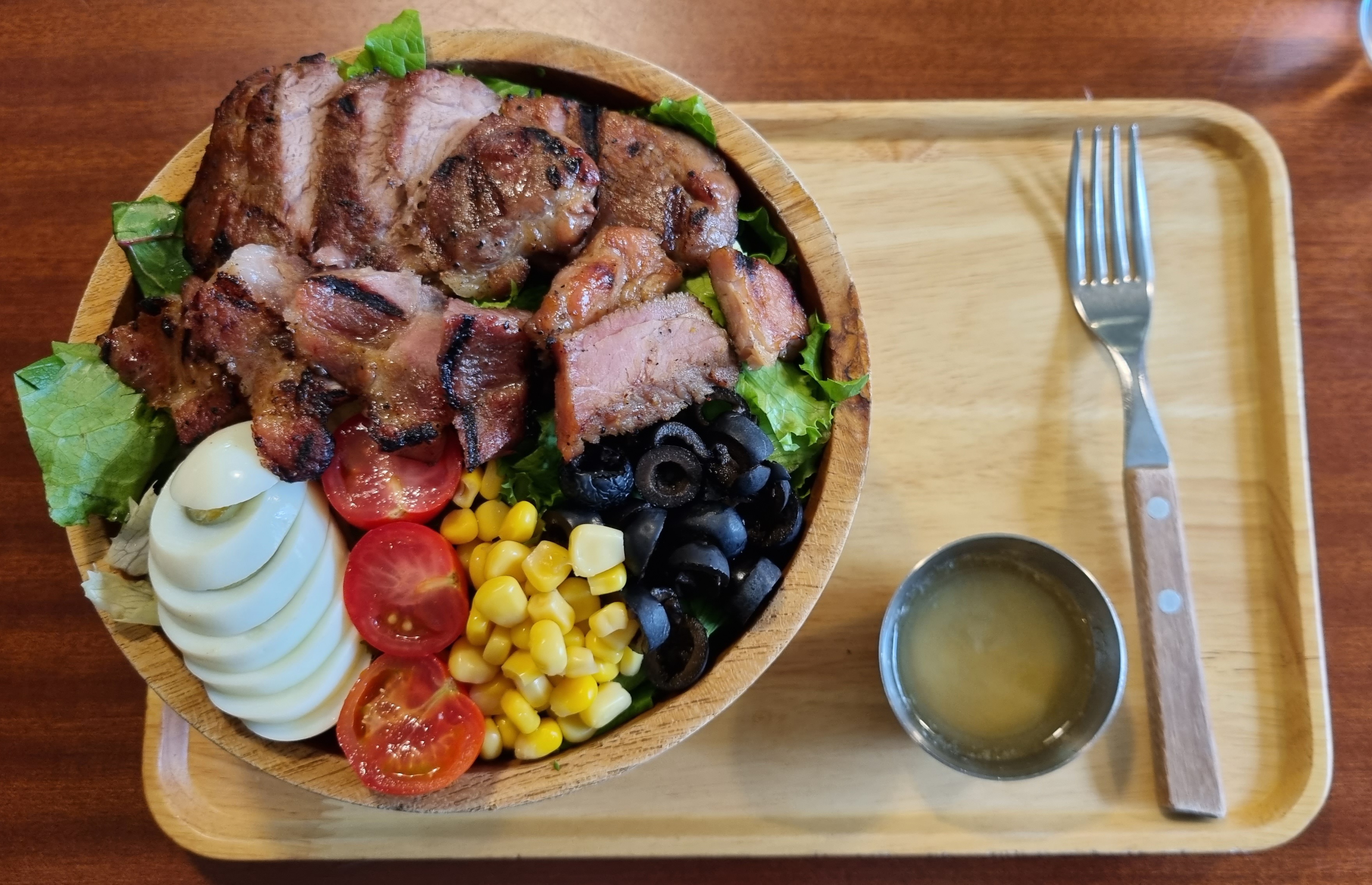 목살 스테이크 샐러드.