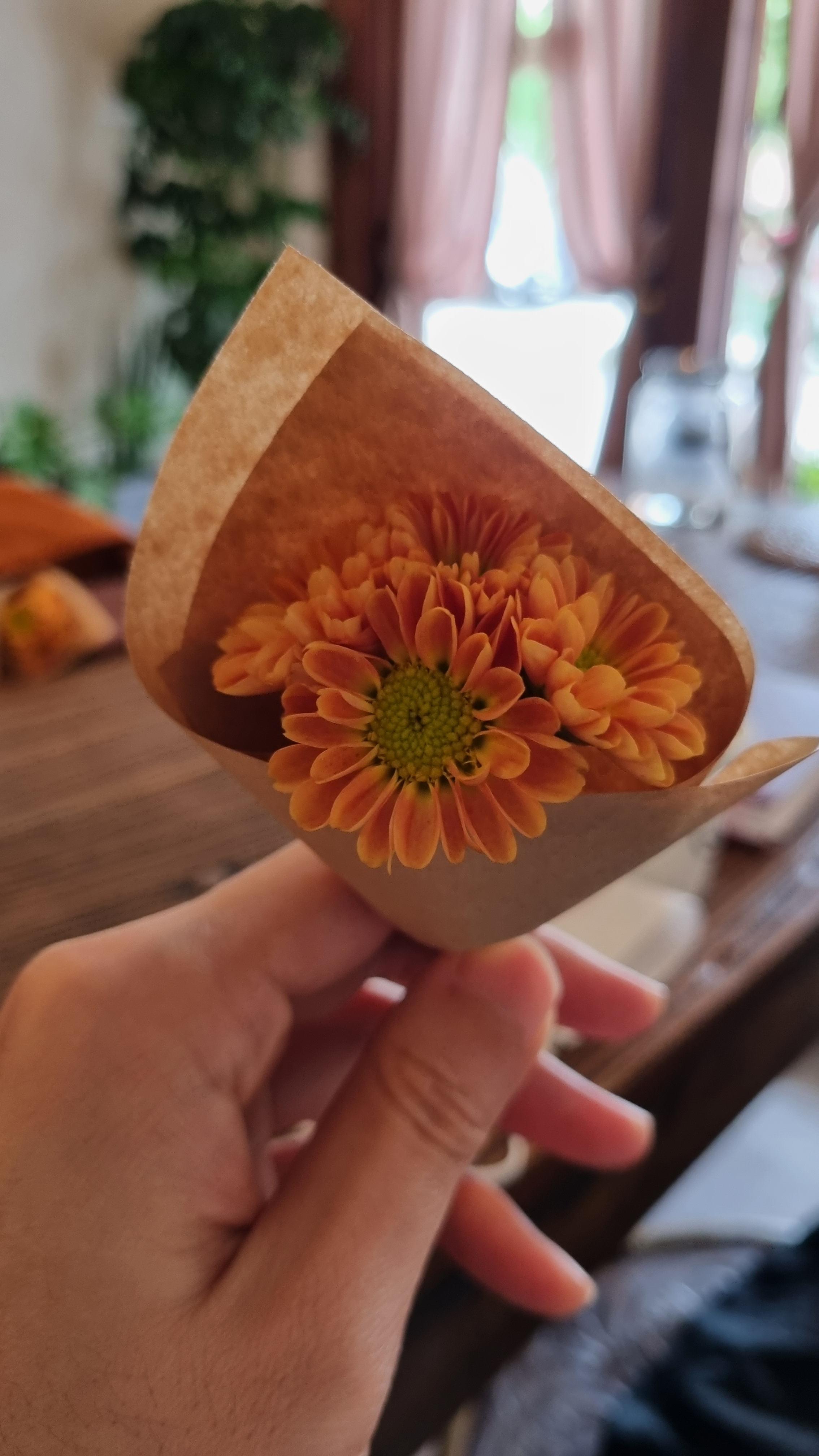 남자들에게 꽃다발 물어보고 주신다면서 작은 노란 국화 3송이 있는 앙증맞은 거 선물로 주심.