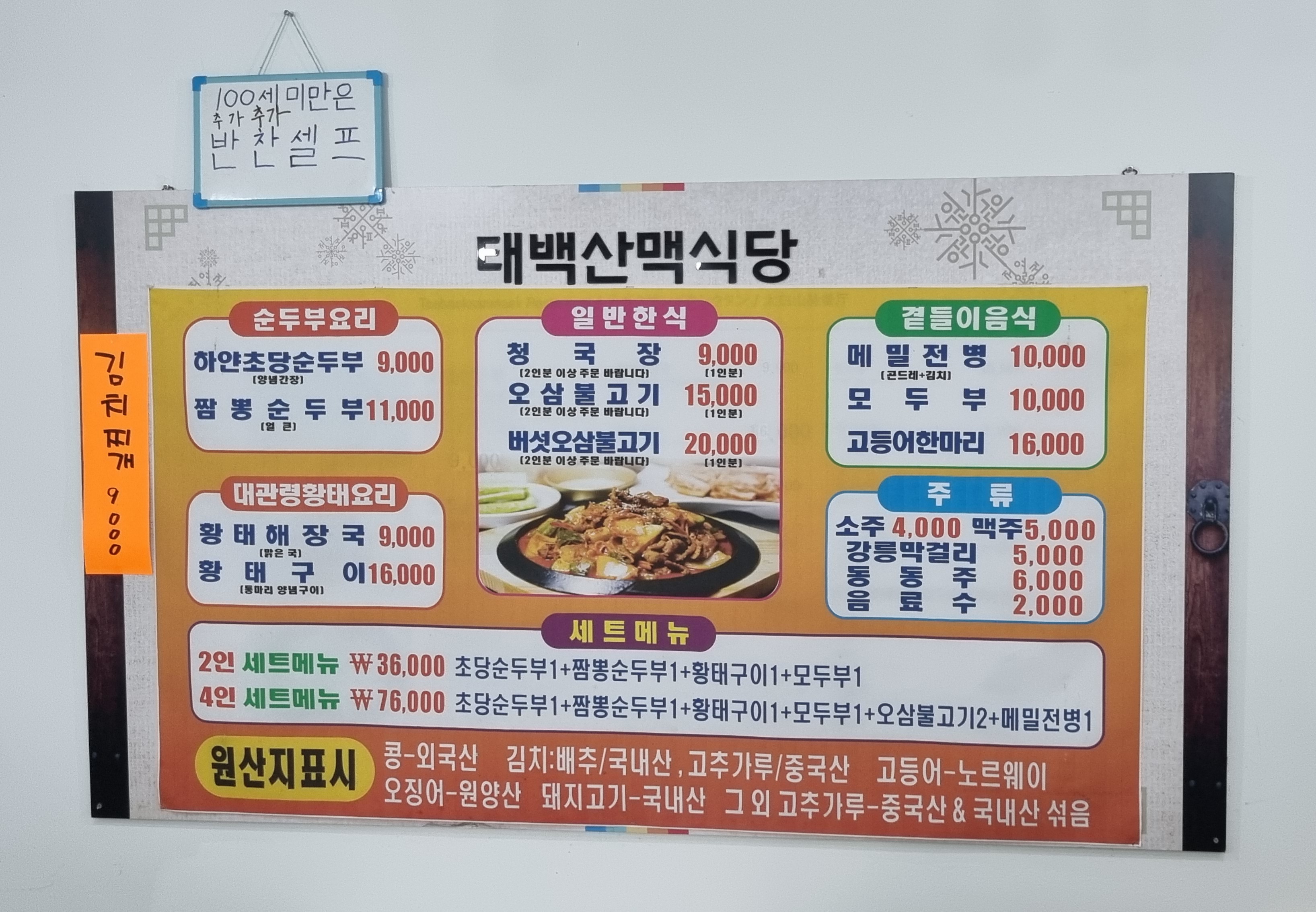 콩나물 황태국 9000원 + 짬뽕 순두부 11000원 주문함.