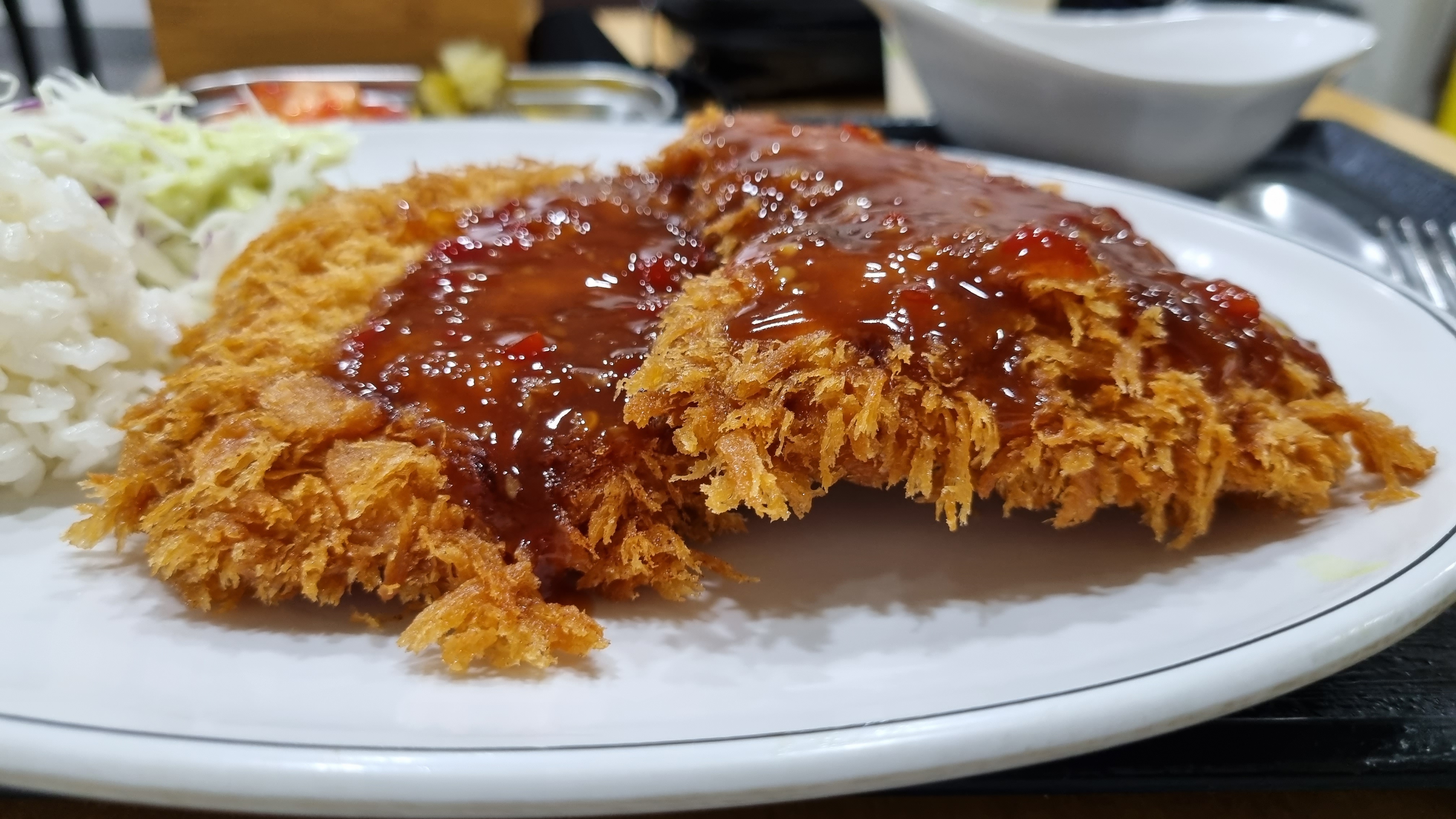 고기는 조금 얇은 편이나 요즘 맨날 두꺼운 고기 돈가스만 먹었더니 튀김 바삭 돈까스가 괜찮게 느껴짐.