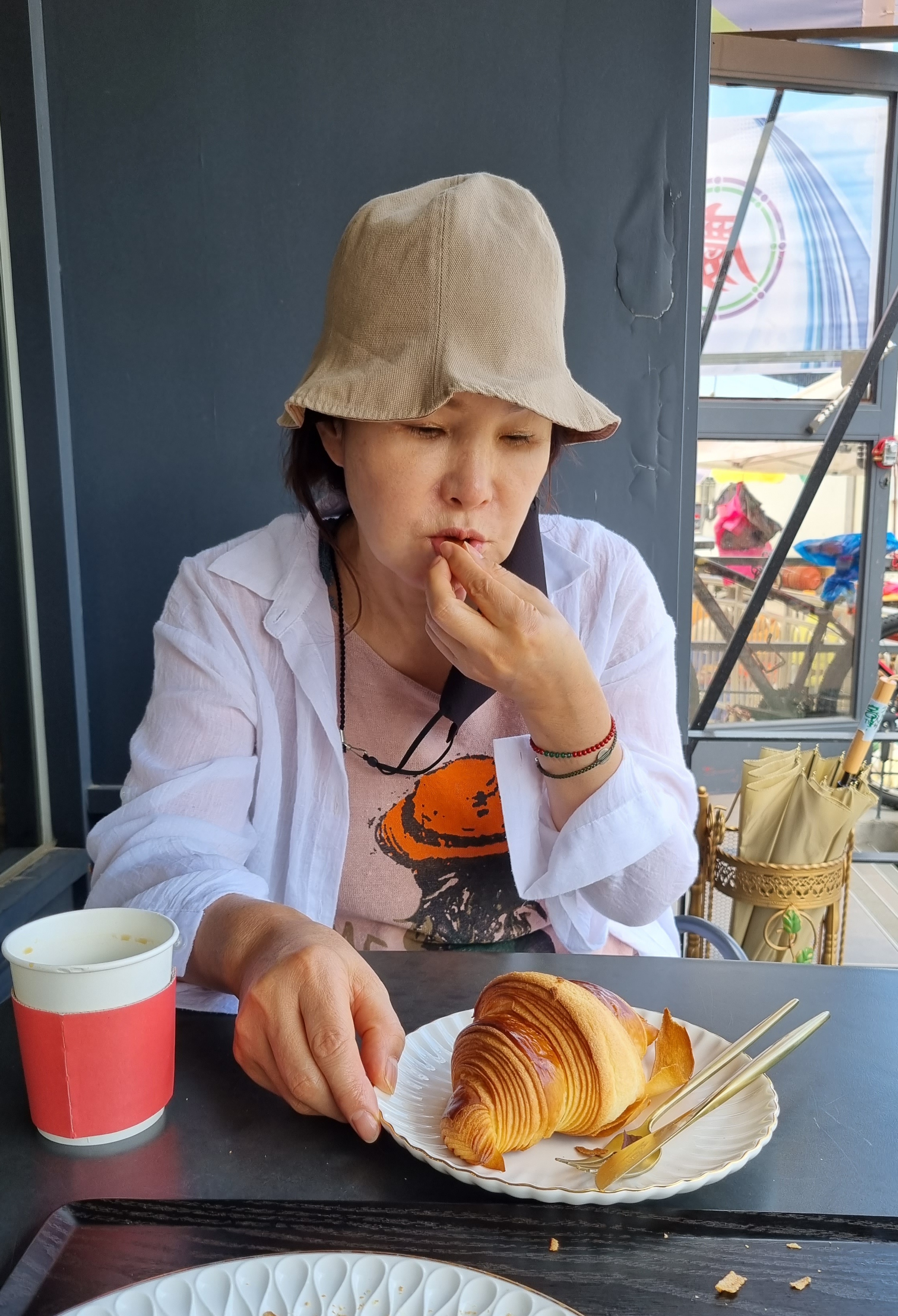 크로와상을 소중하게 뜯어 드시는 엄니 ㅋㅋ.