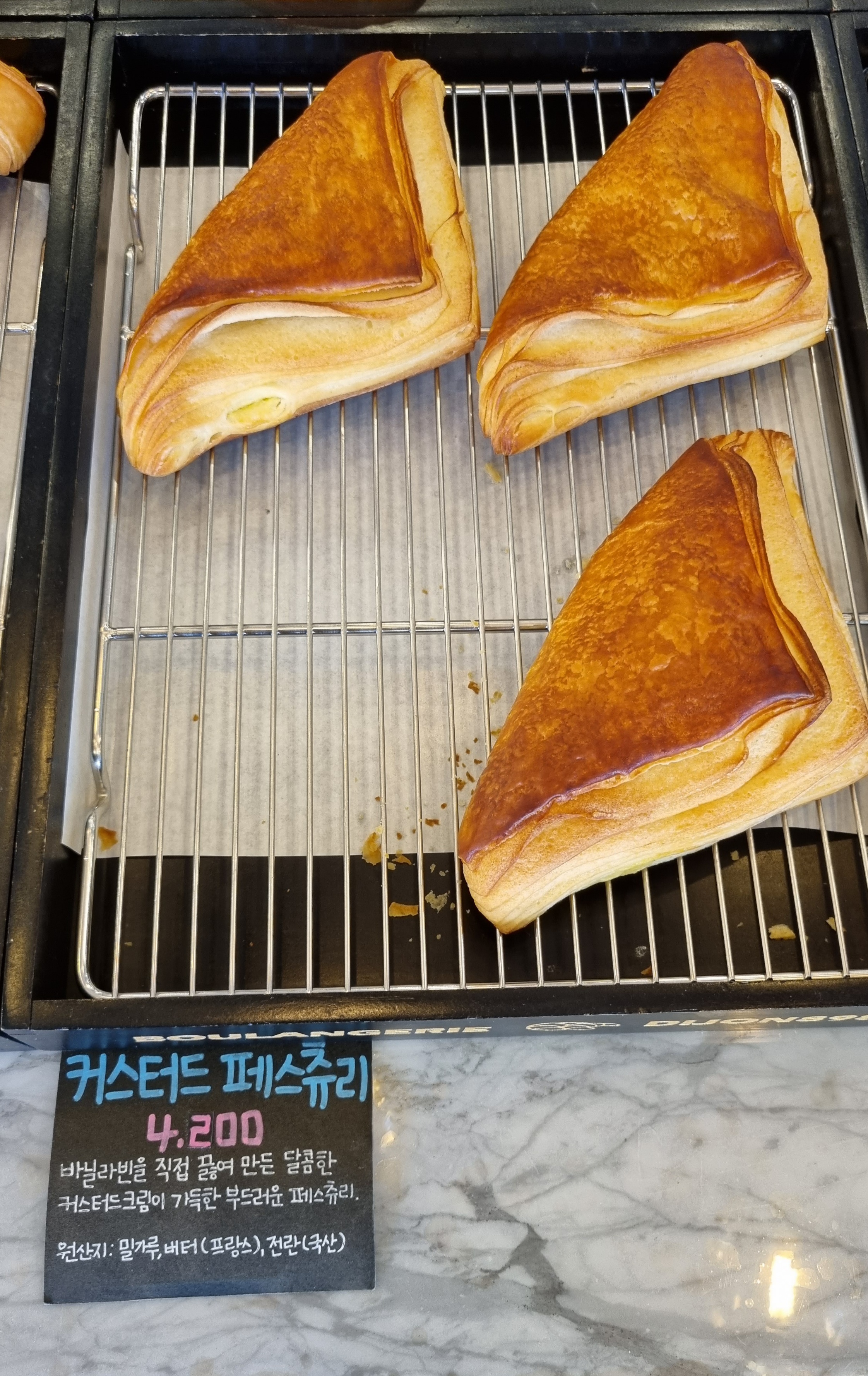 커스터드 패스츄리는 비쥬얼도 이쁘고, 카스터드도 너무 달지 않고 적당한 달기로 빵과 잘 어울어짐.