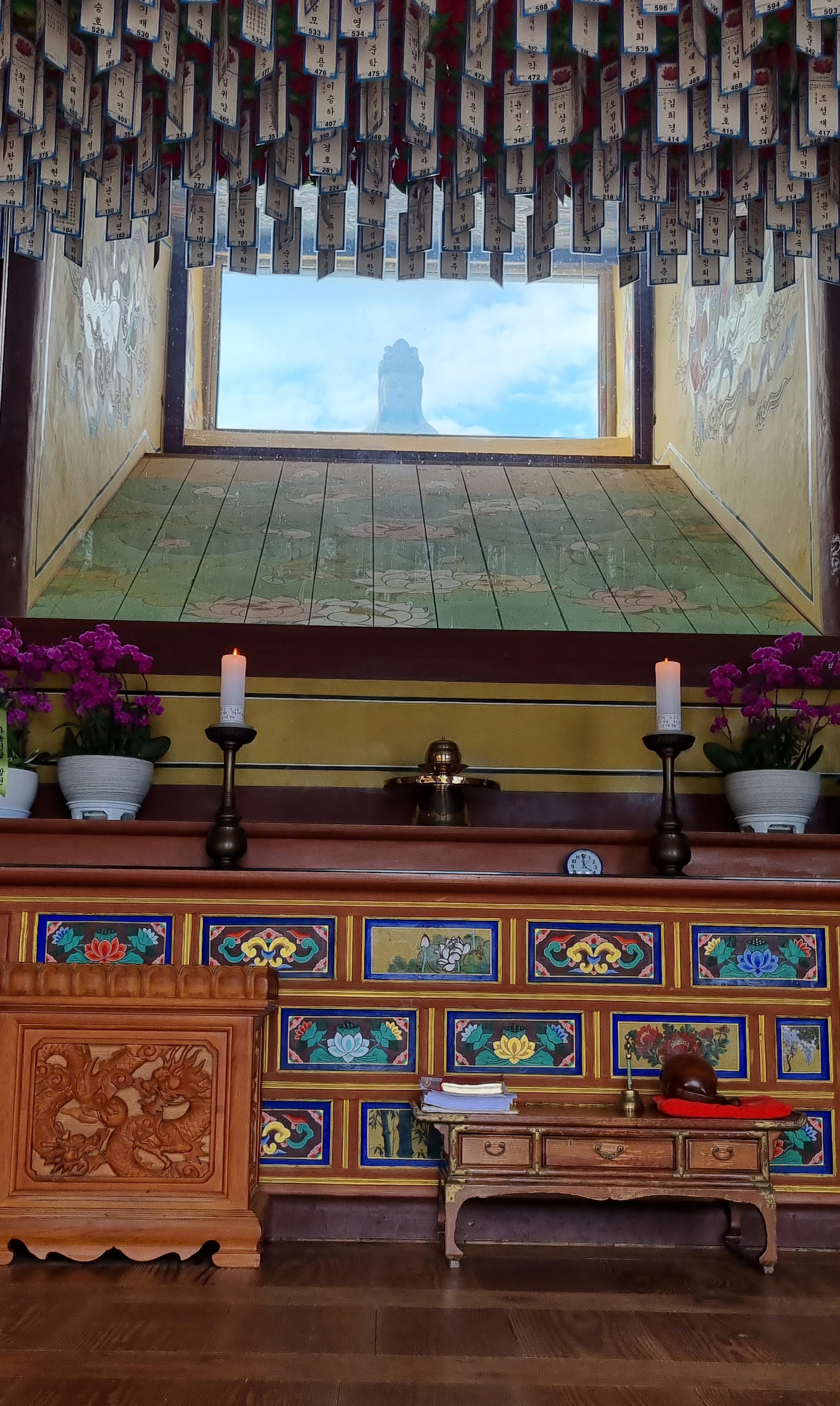 해수관음상 아래쪽에 있는 공간에서 이렇게 관음상의 얼굴을 또 볼 수 있음.