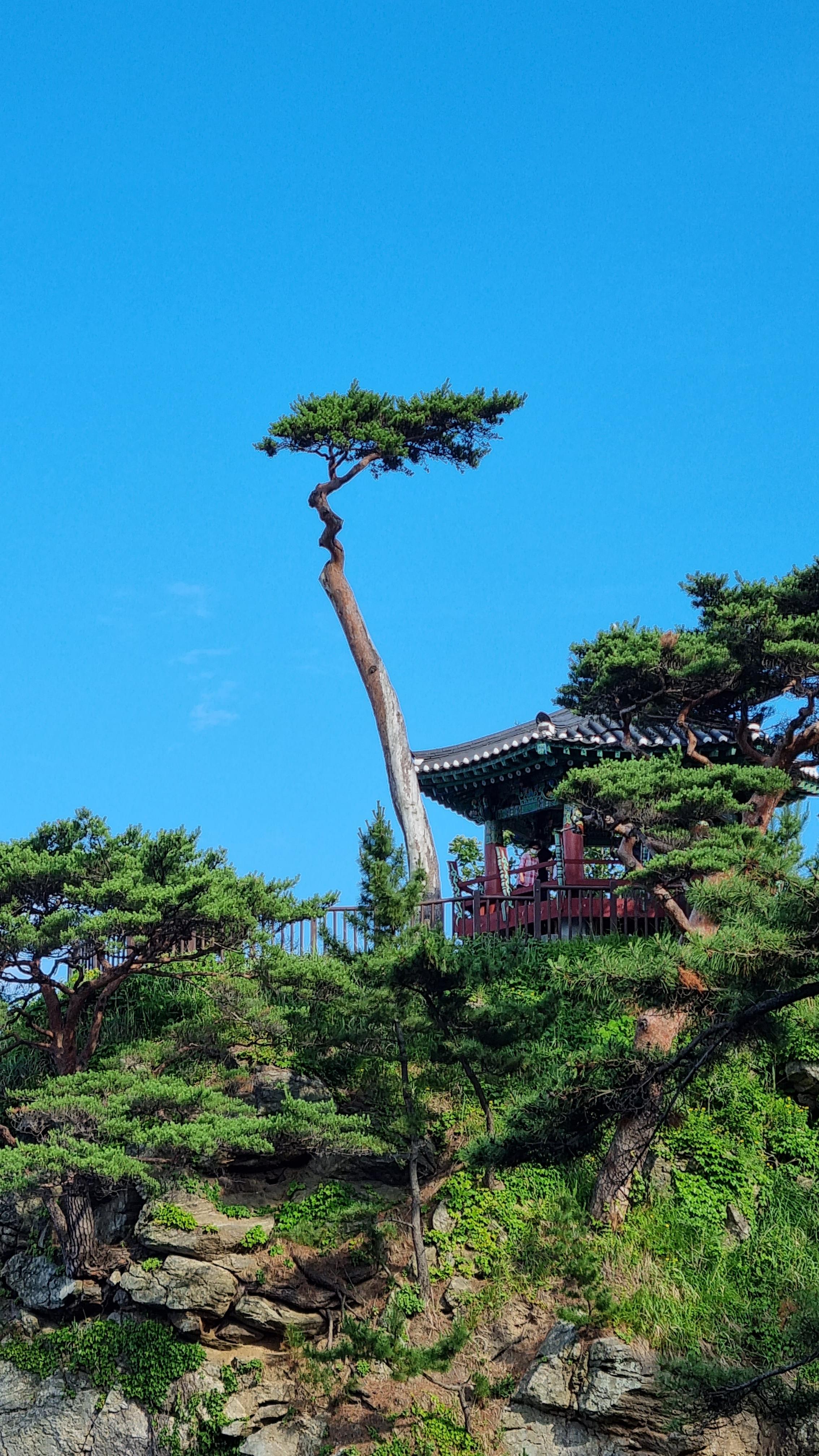 의상대 앞 소나무를 다른 각도에서 보면 저런 모양.