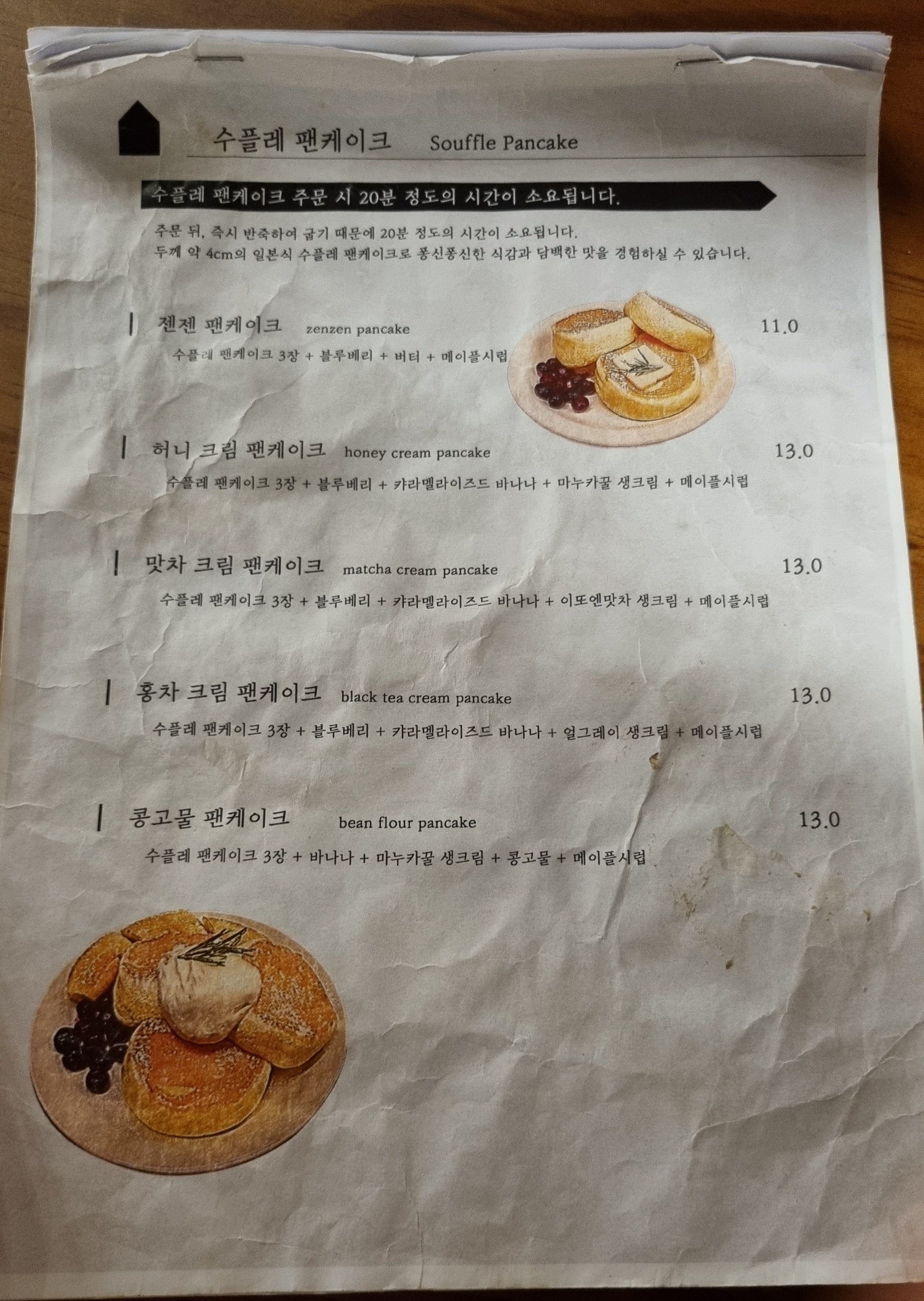 방이에 있는 카페면서 수플레 팬케이크 가성비 짱이라는 집.