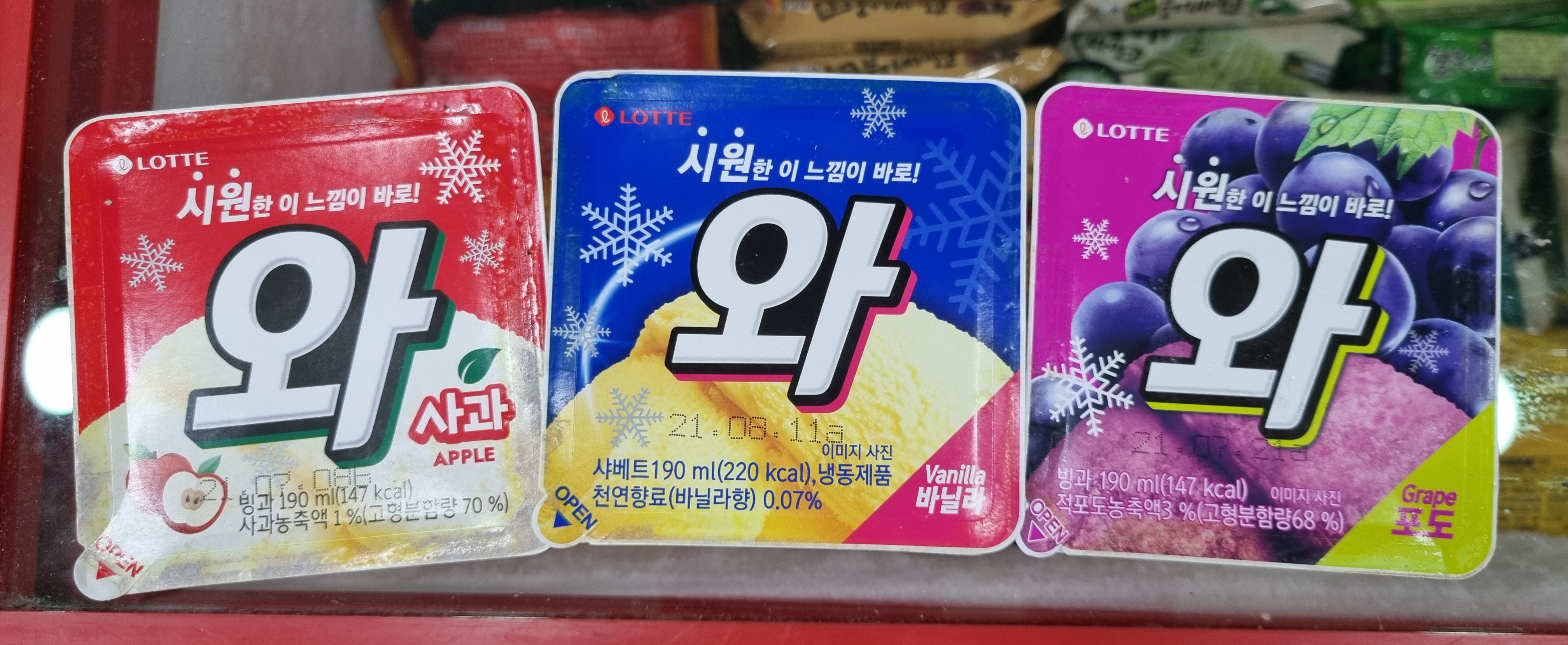 무인 아이스크림 매장을 갔다가 '와' 사과맛과 포도맛을 발견했습니다.