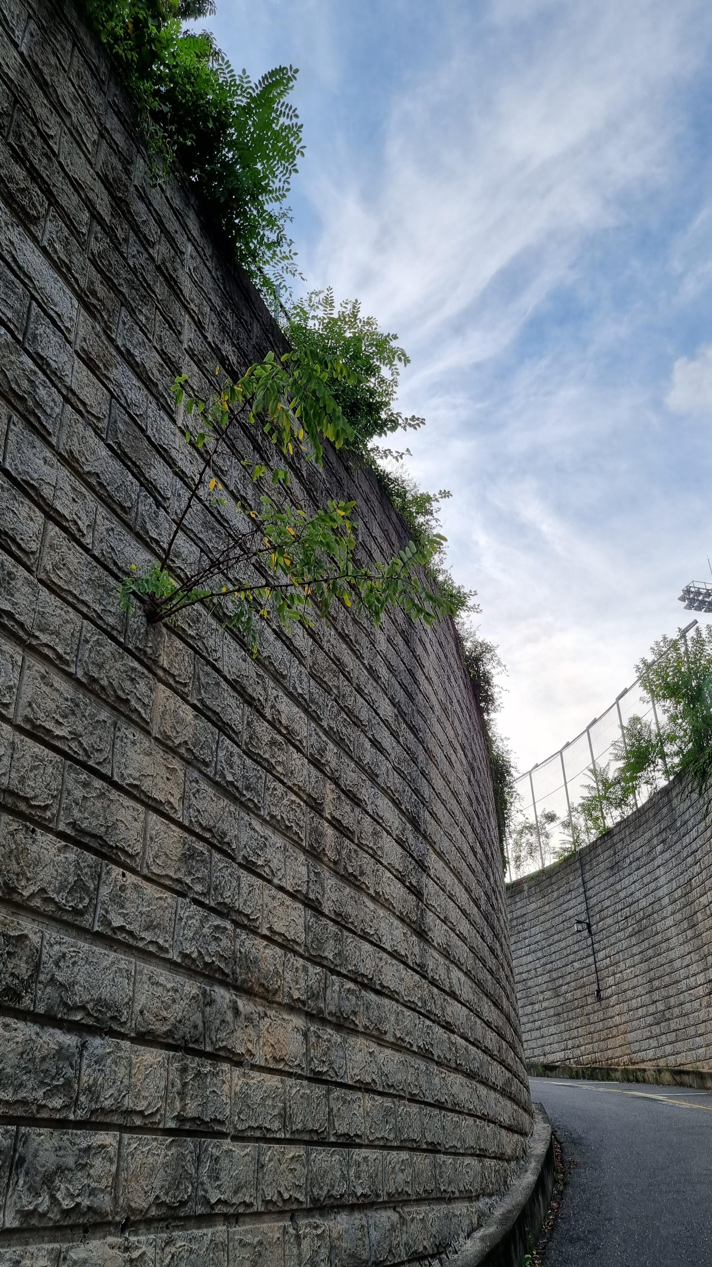 중간에 벽을 뚫고 나온 식물이 인상적.