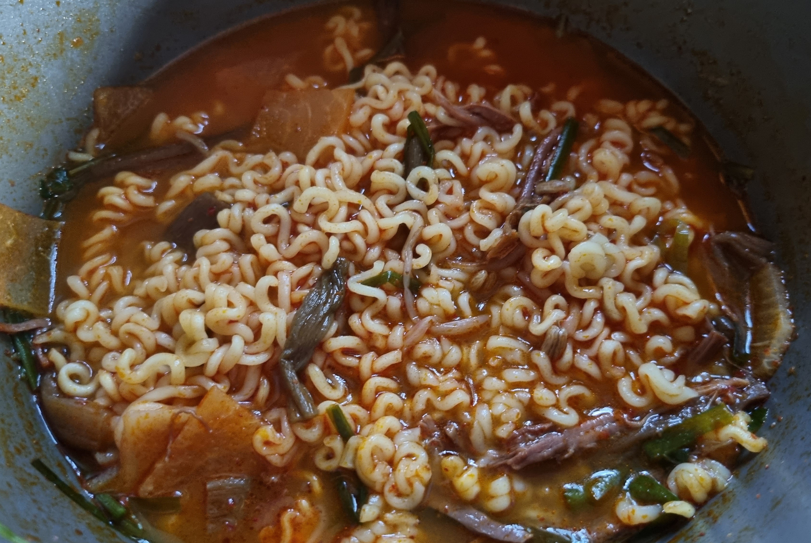 산책 후 집에서 끓여먹는 진짜 육개장 라면.