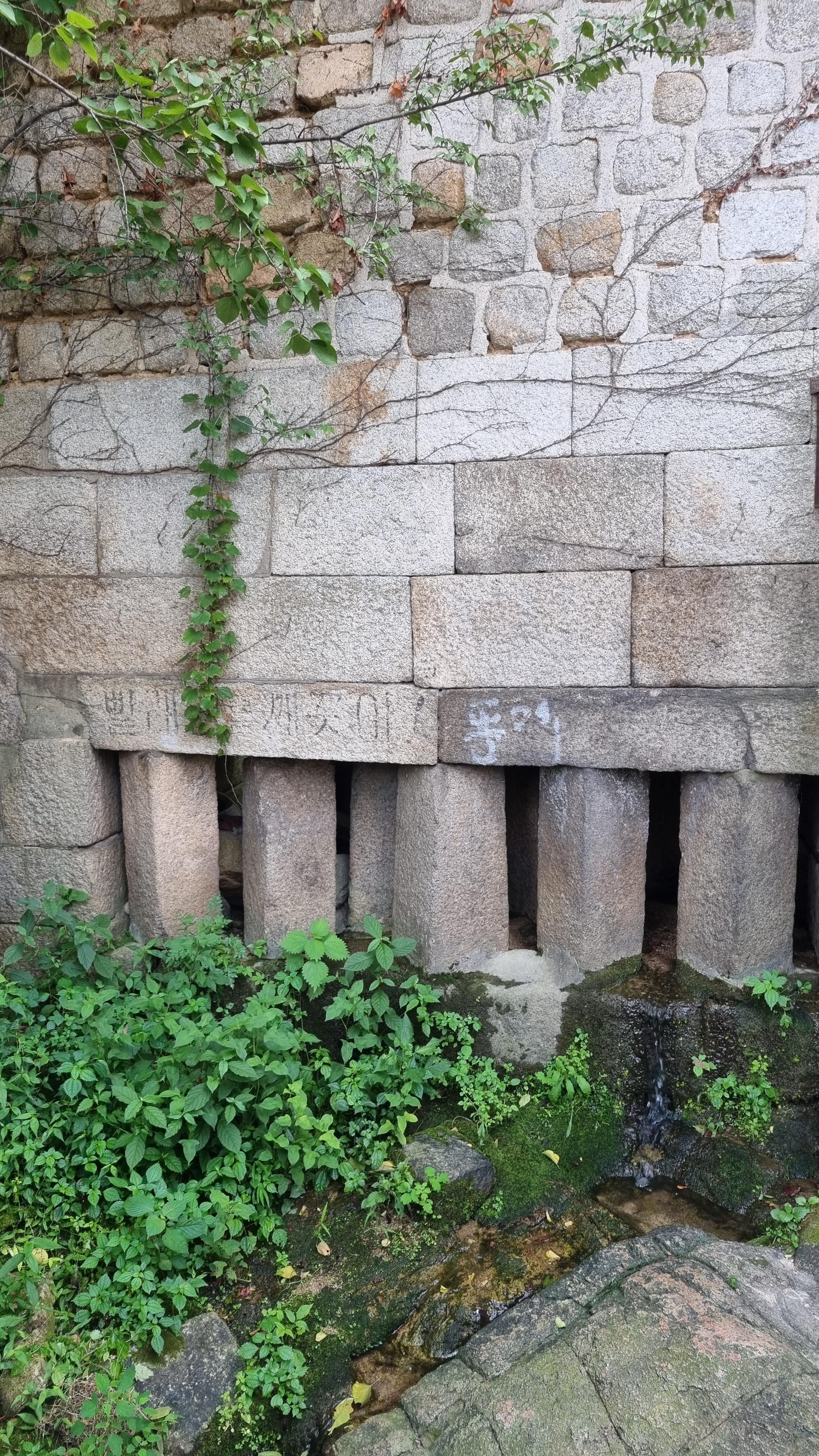 성균관대 측문으로 연결되는 독특한 돌벽길.