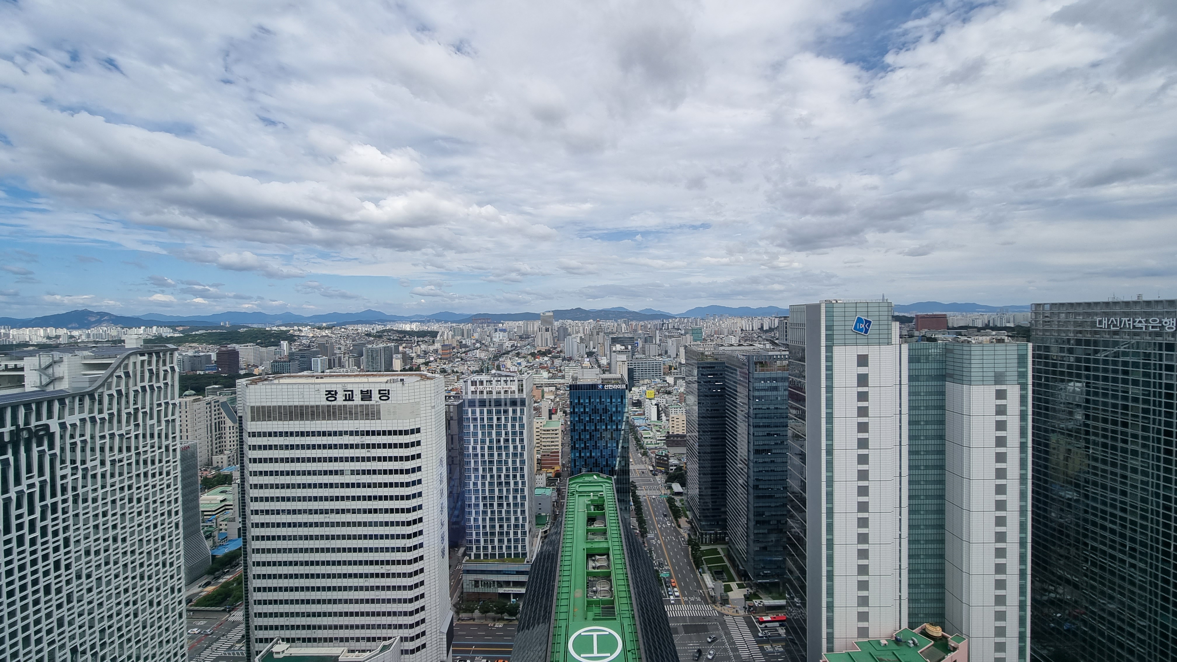 그 고층 건물의 꼭대기에서는 하늘은 물론 가시거리가 엄청나다.