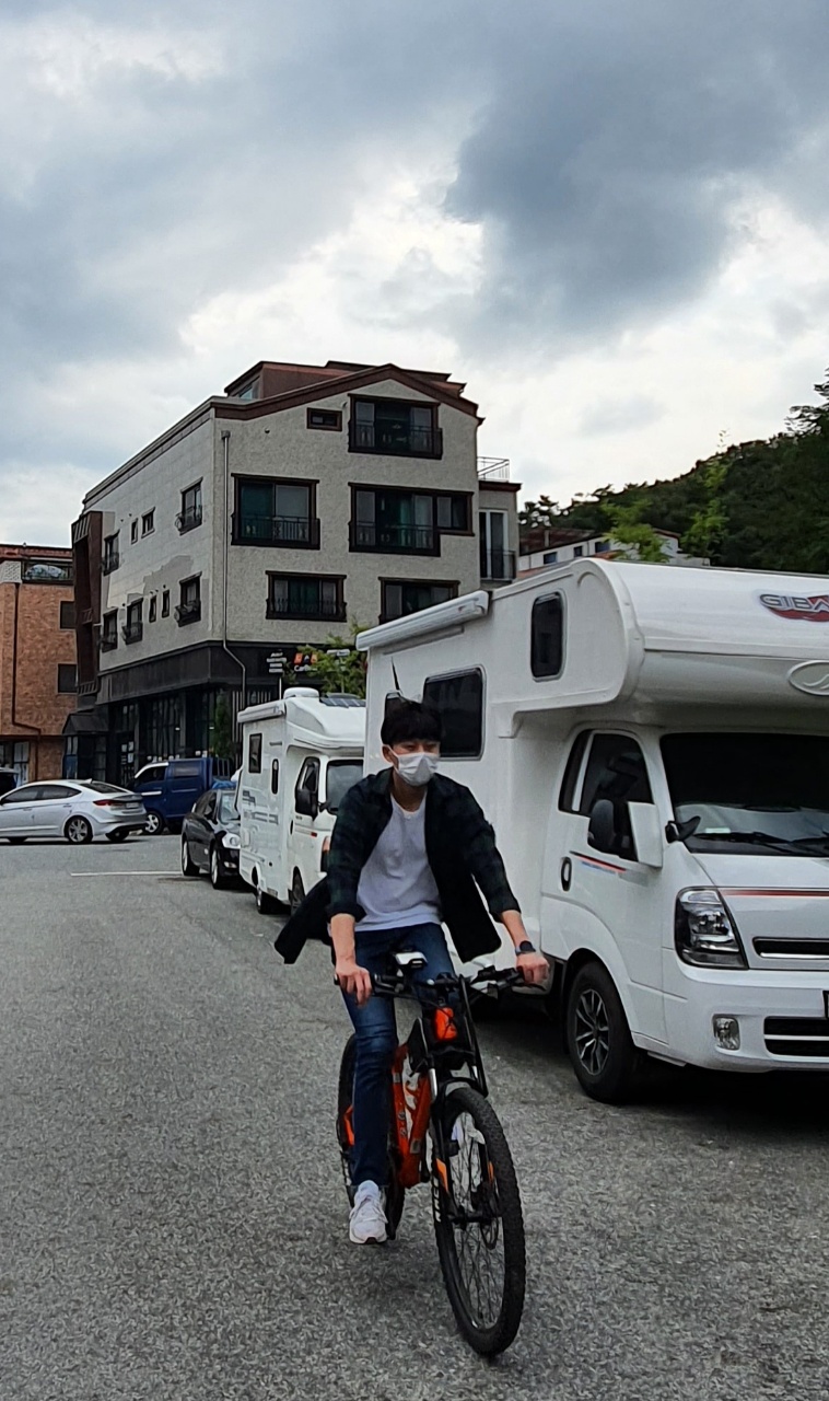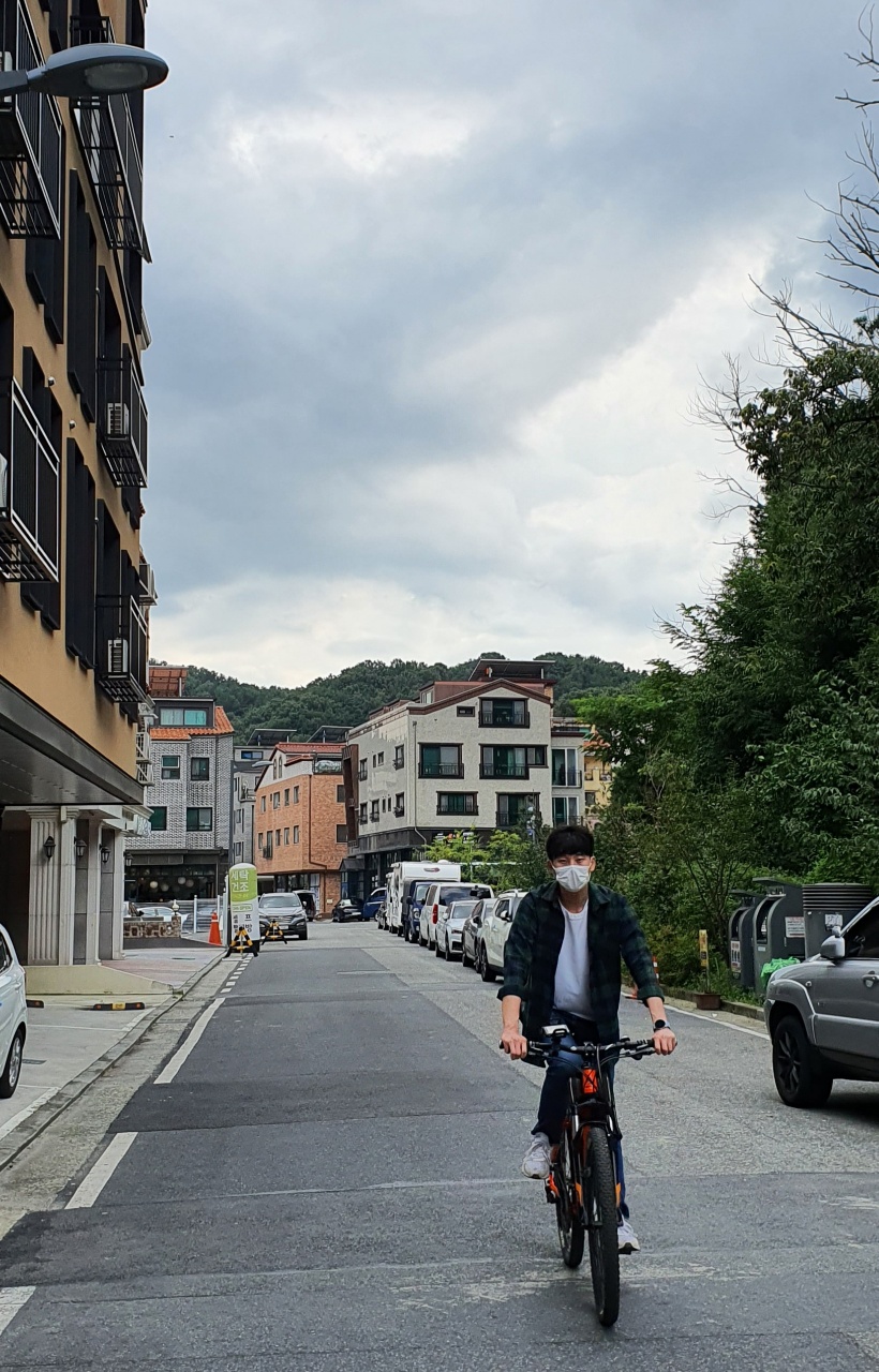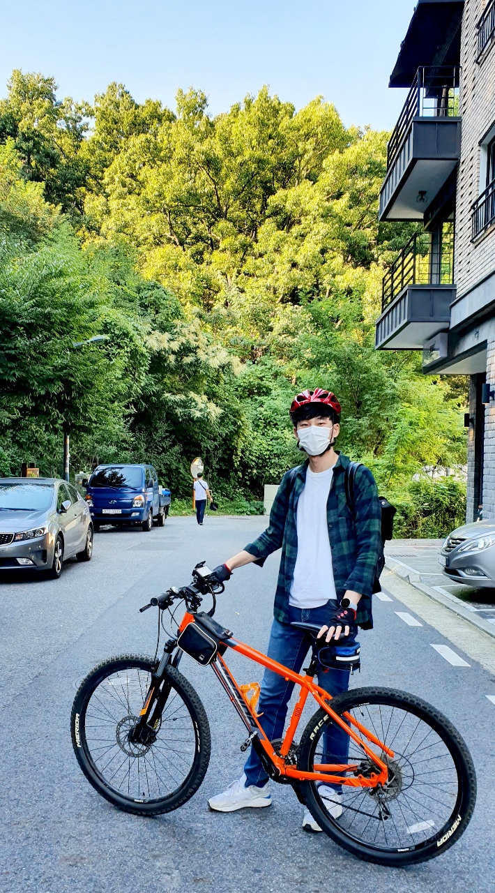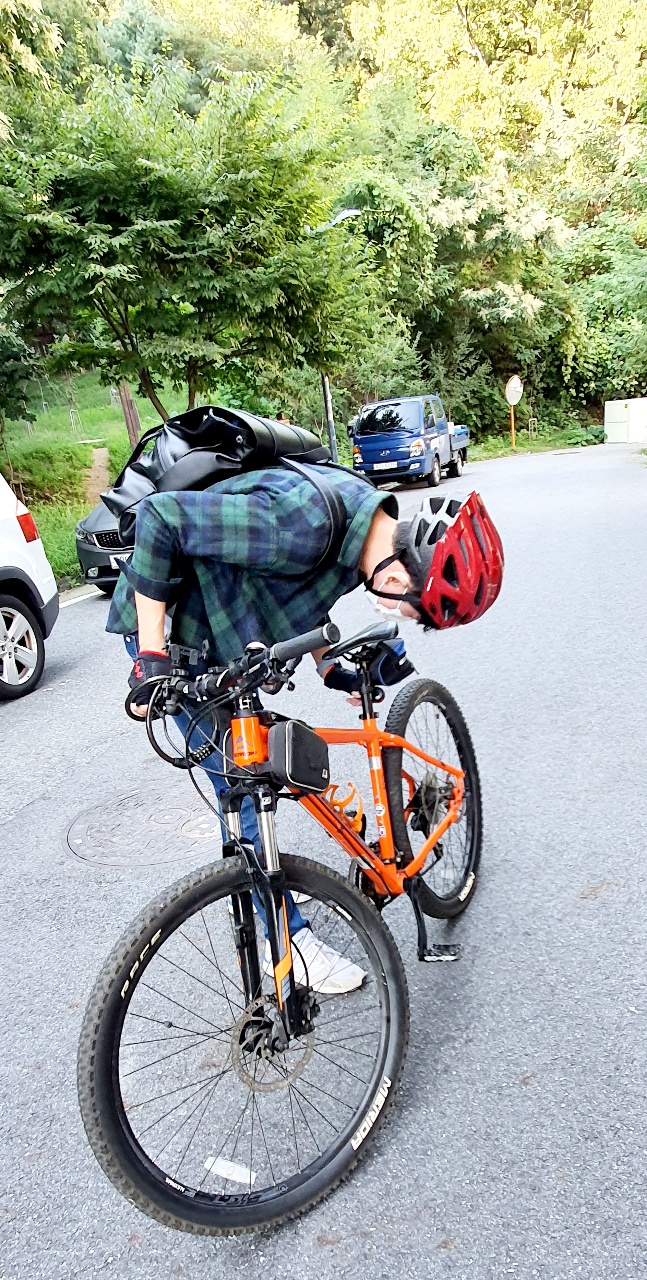 너무 크고 무거운 MTB 자전거라 타지 않는다고 하신다.