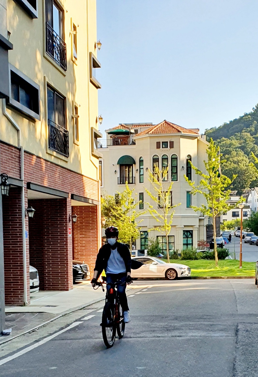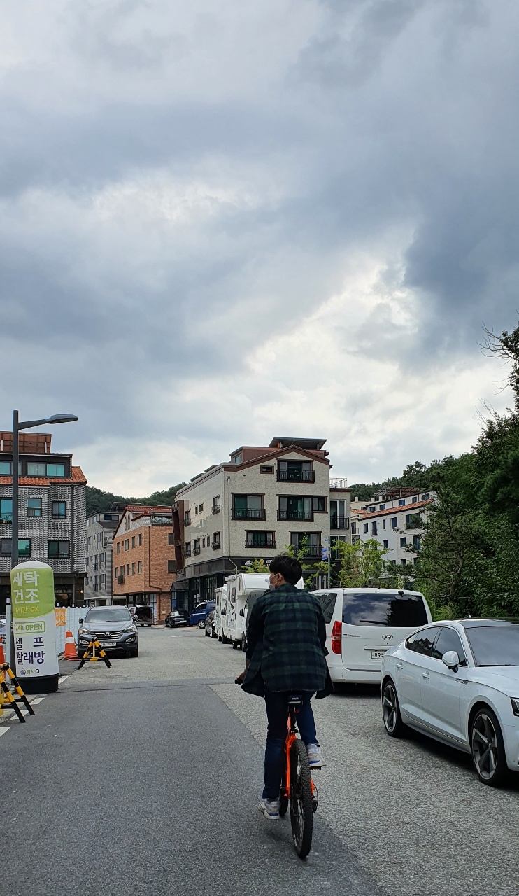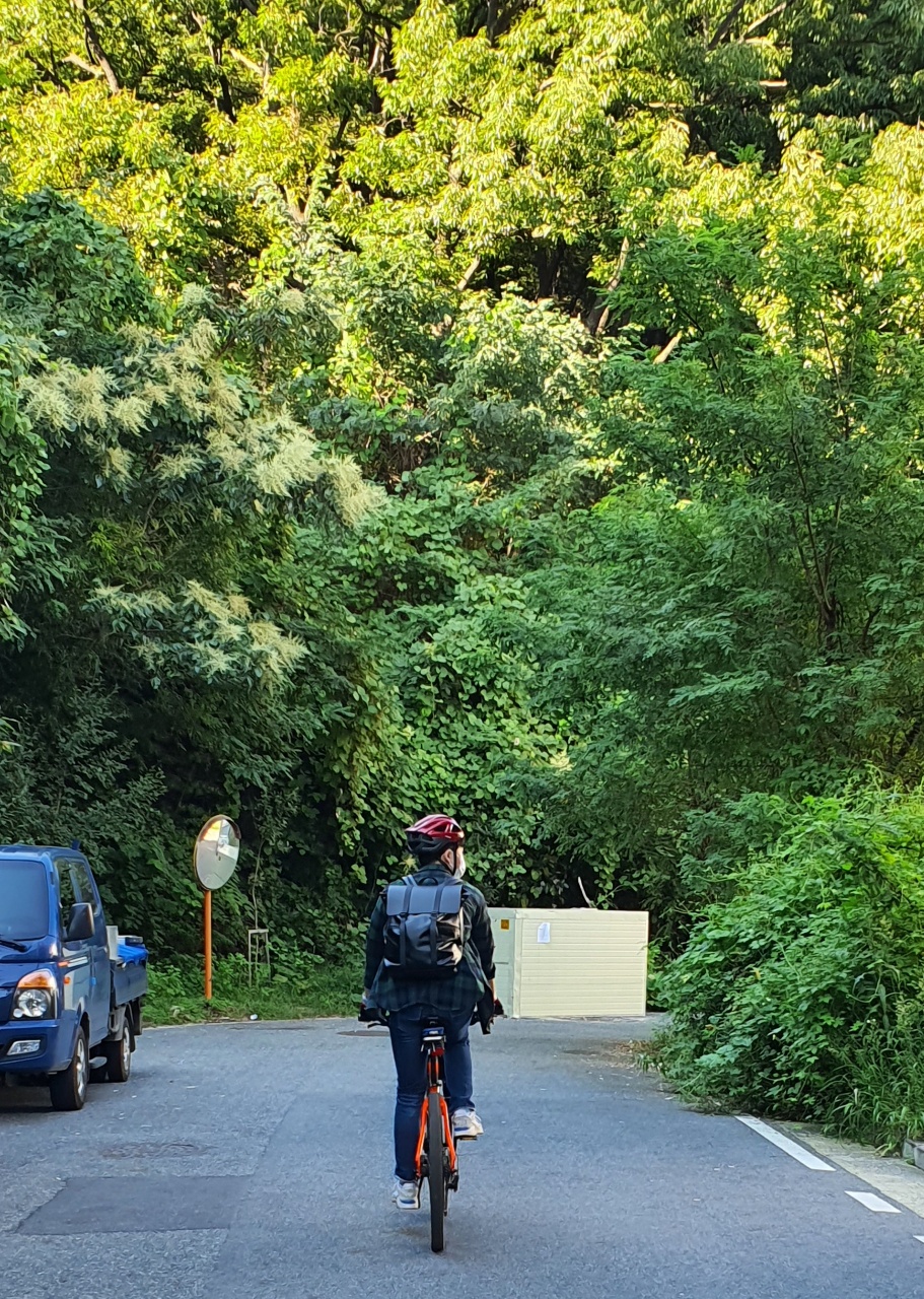 너무 크고 무거운 MTB 자전거라 타지 않는다고 하신다.