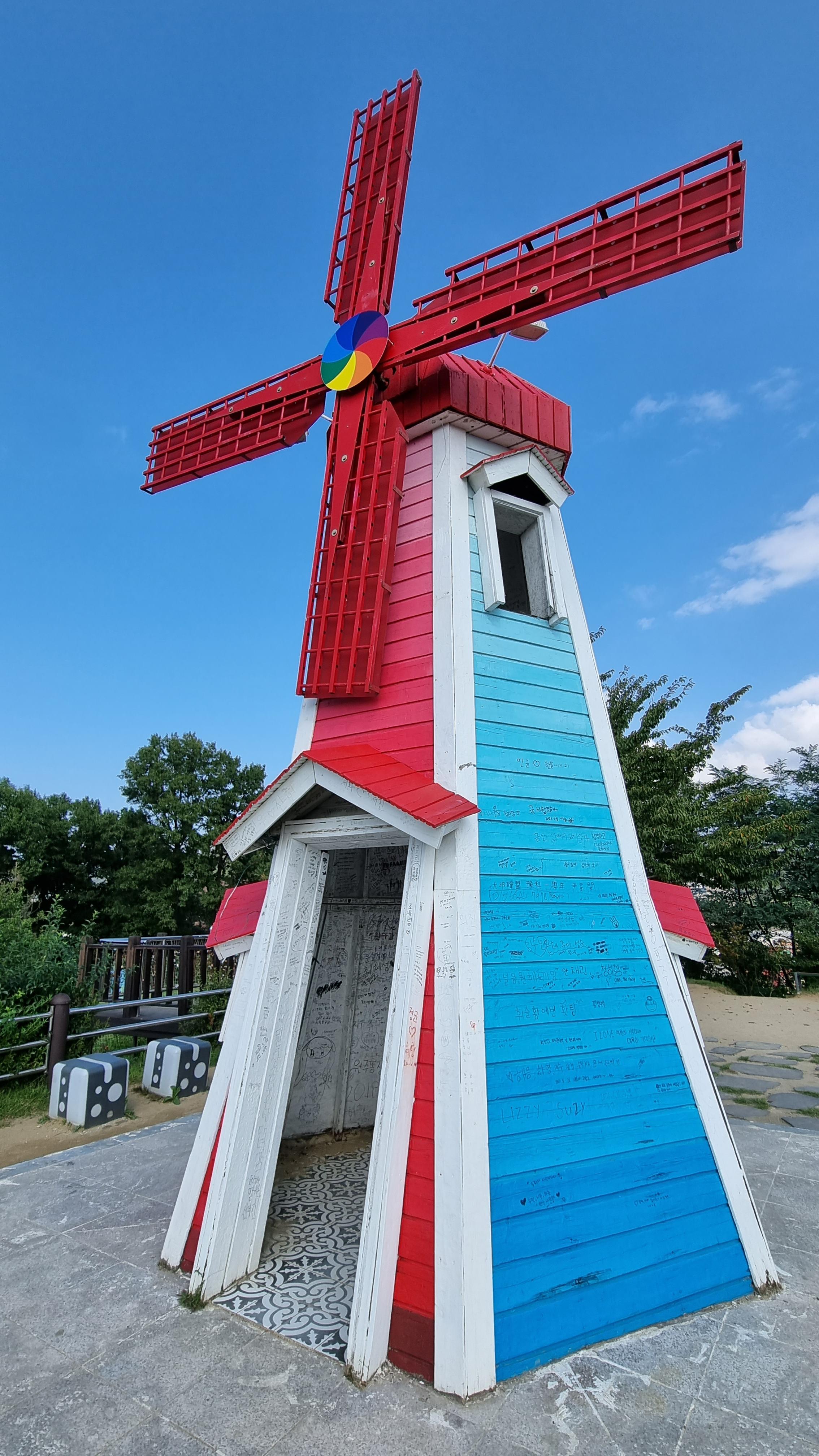 청춘들의 낙서가 가득한 작은 풍차.
