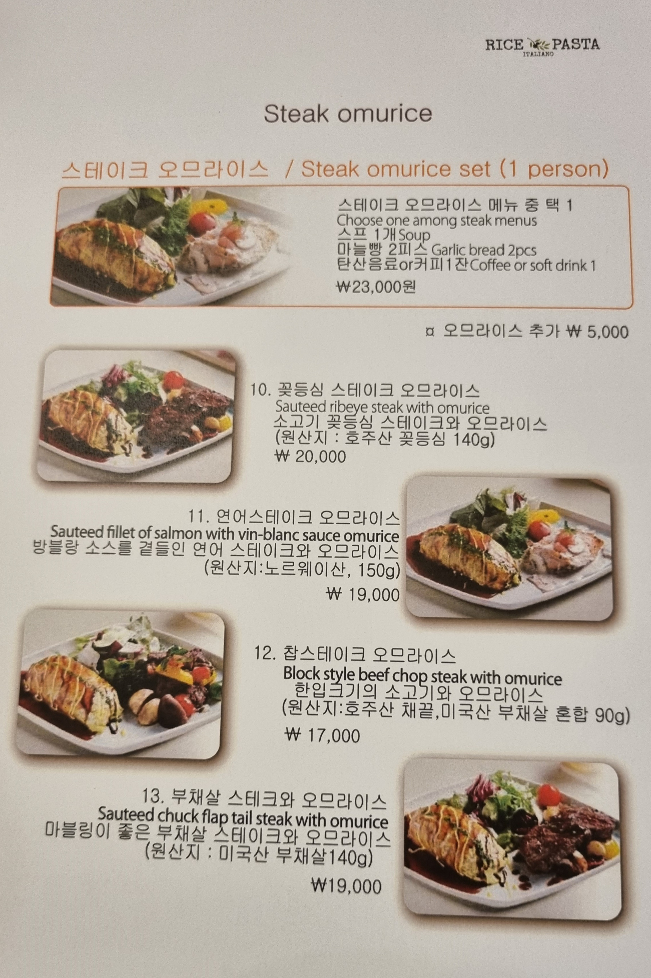 꽃등심 스테이크 오므라이스.