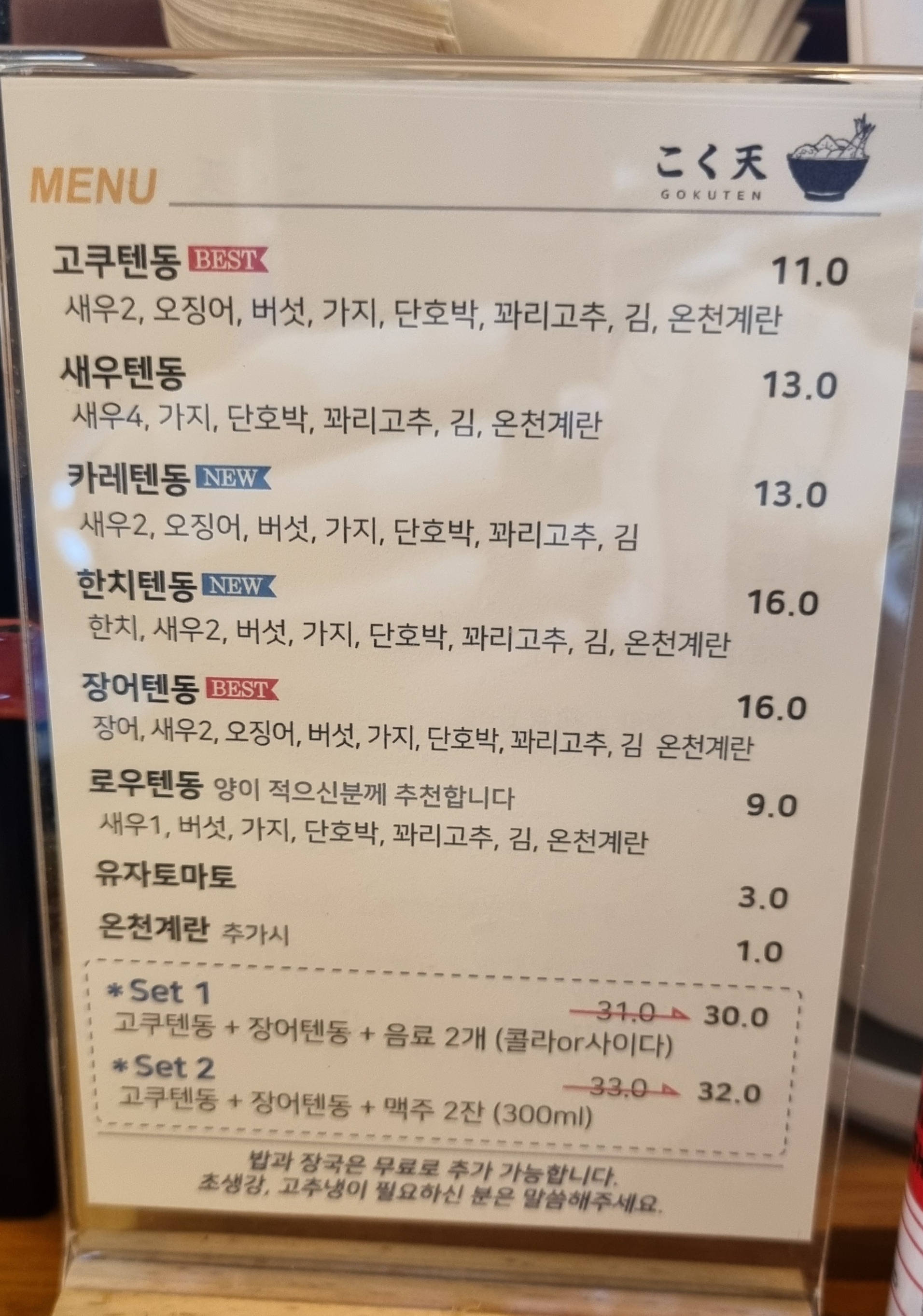 고쿠텐 텐동 주문.