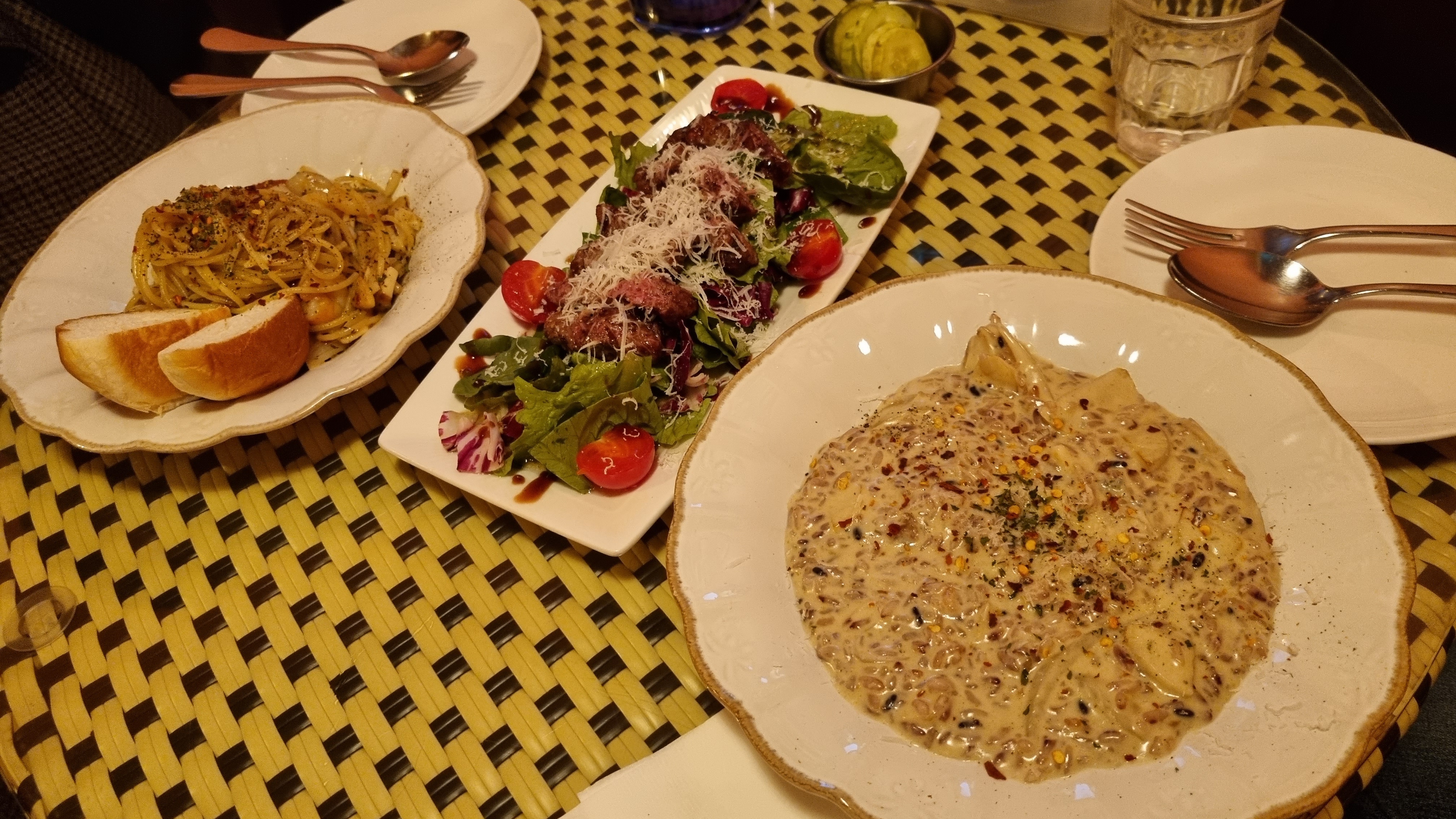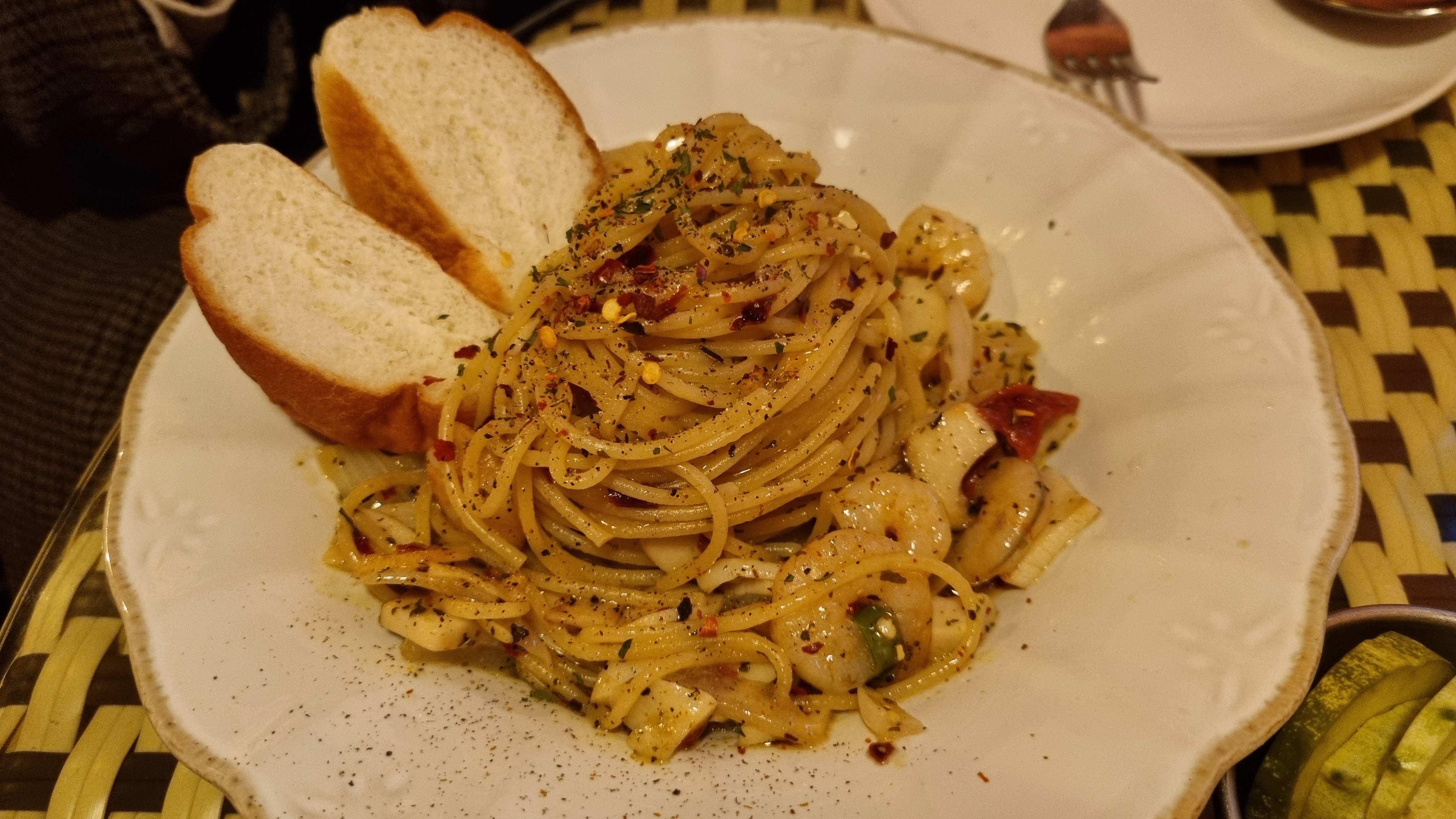 여기서는 '새우 오일 파스타' 주문.