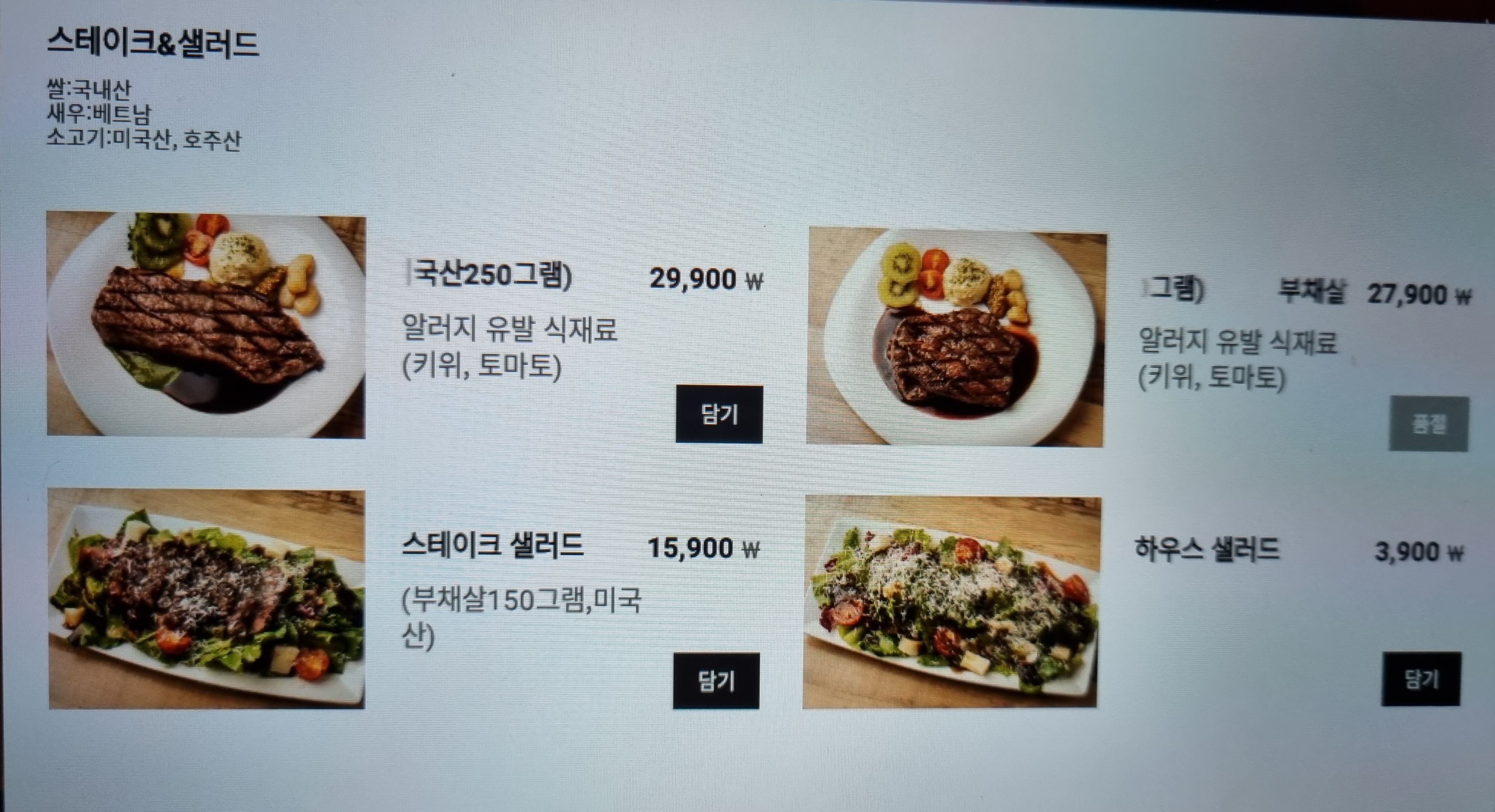 여기서는 '스테이크 샐러드' 주문.