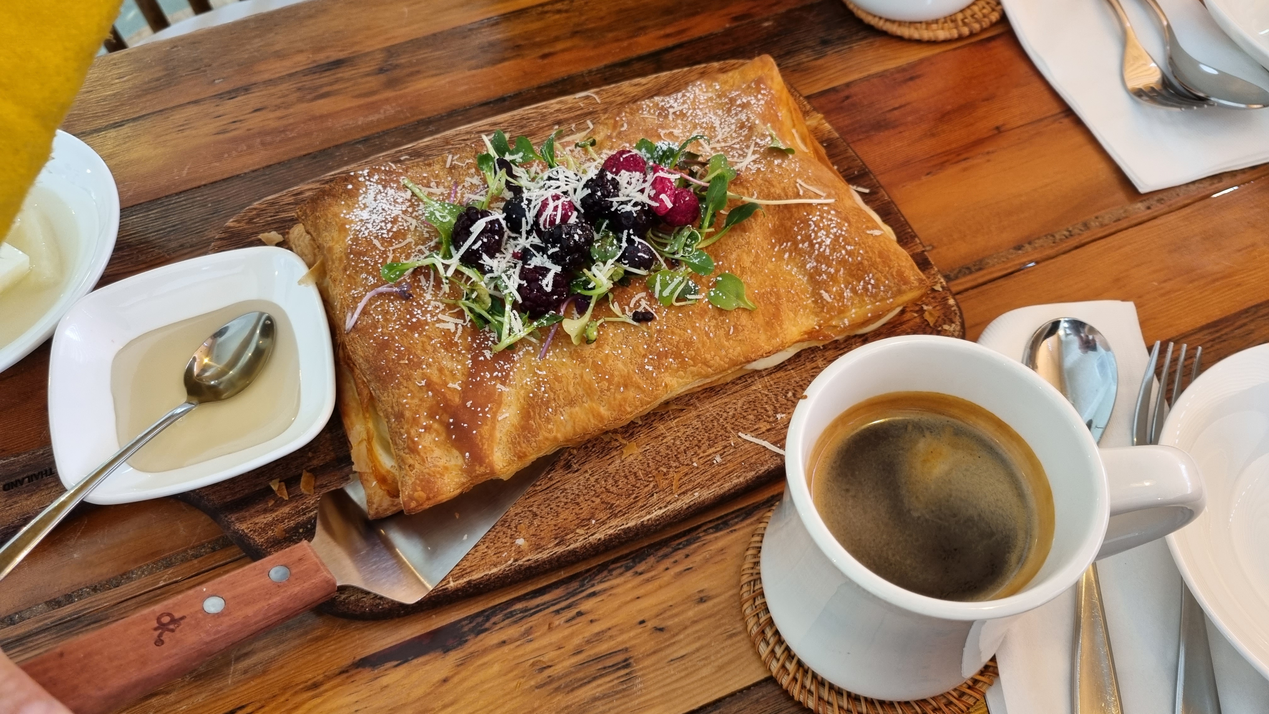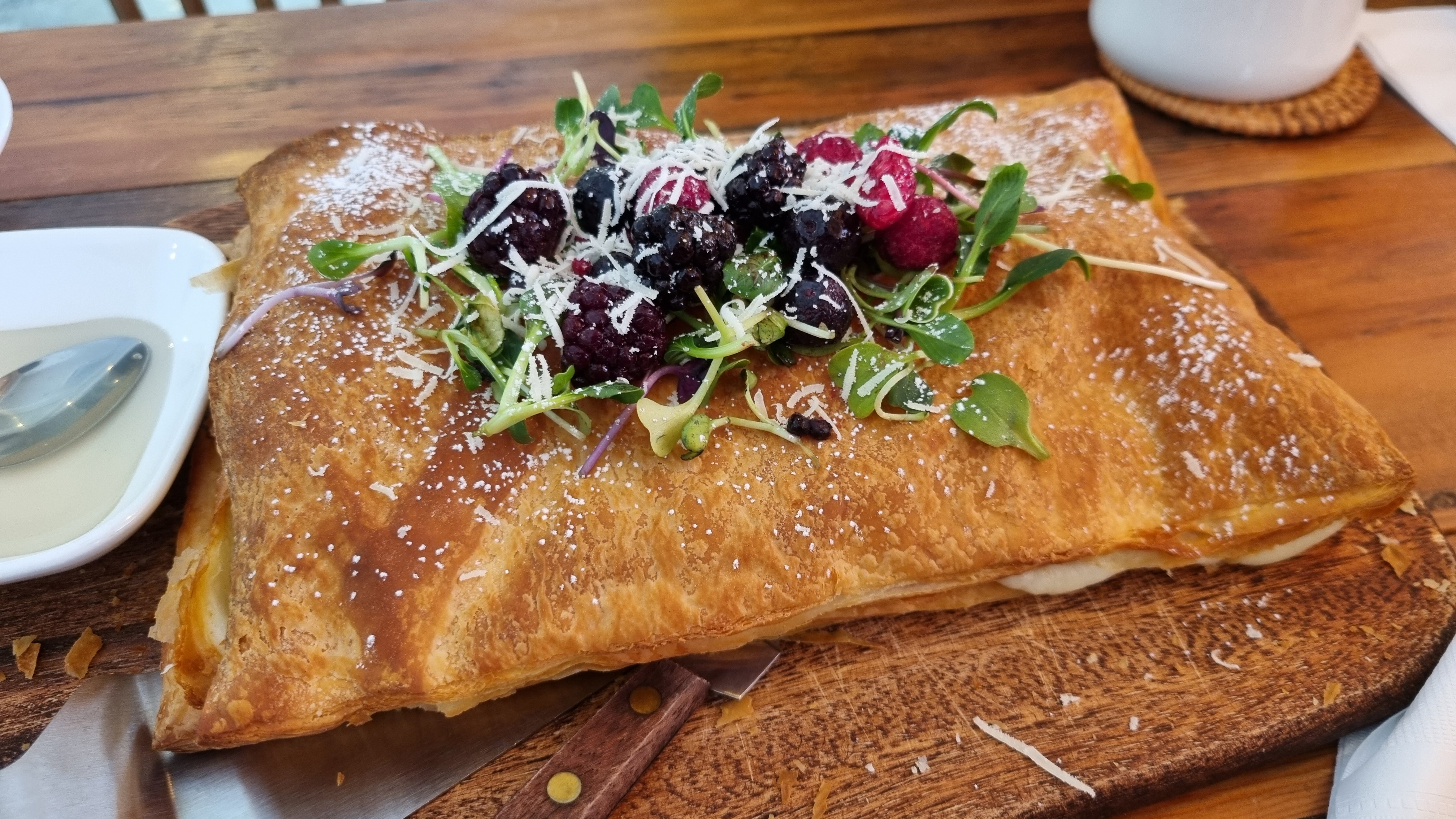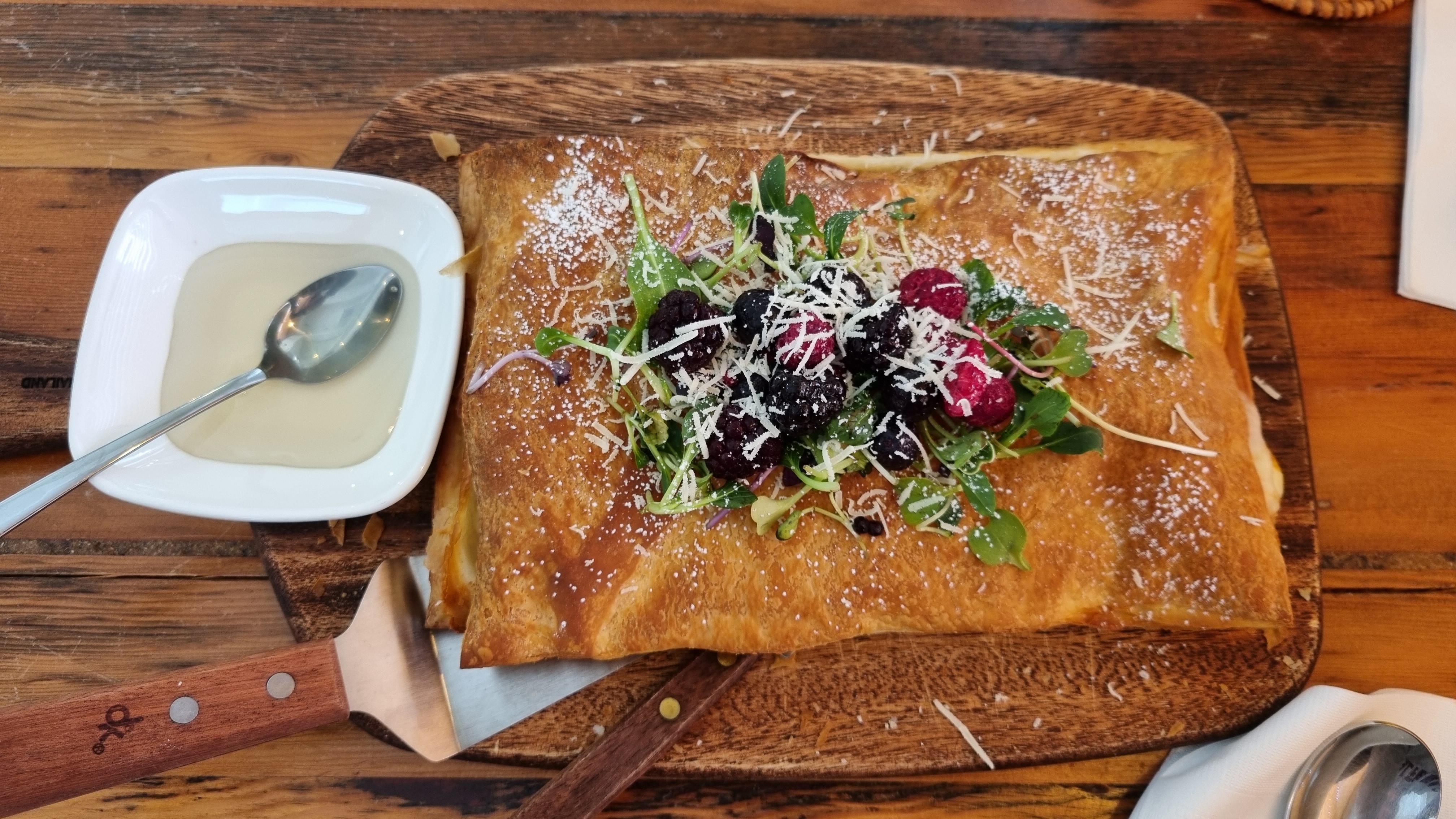 위에 얹어진 베리류는 냉동버전으로 해동이 충분히 되지 않고 나오는 것이 조금 아쉽.