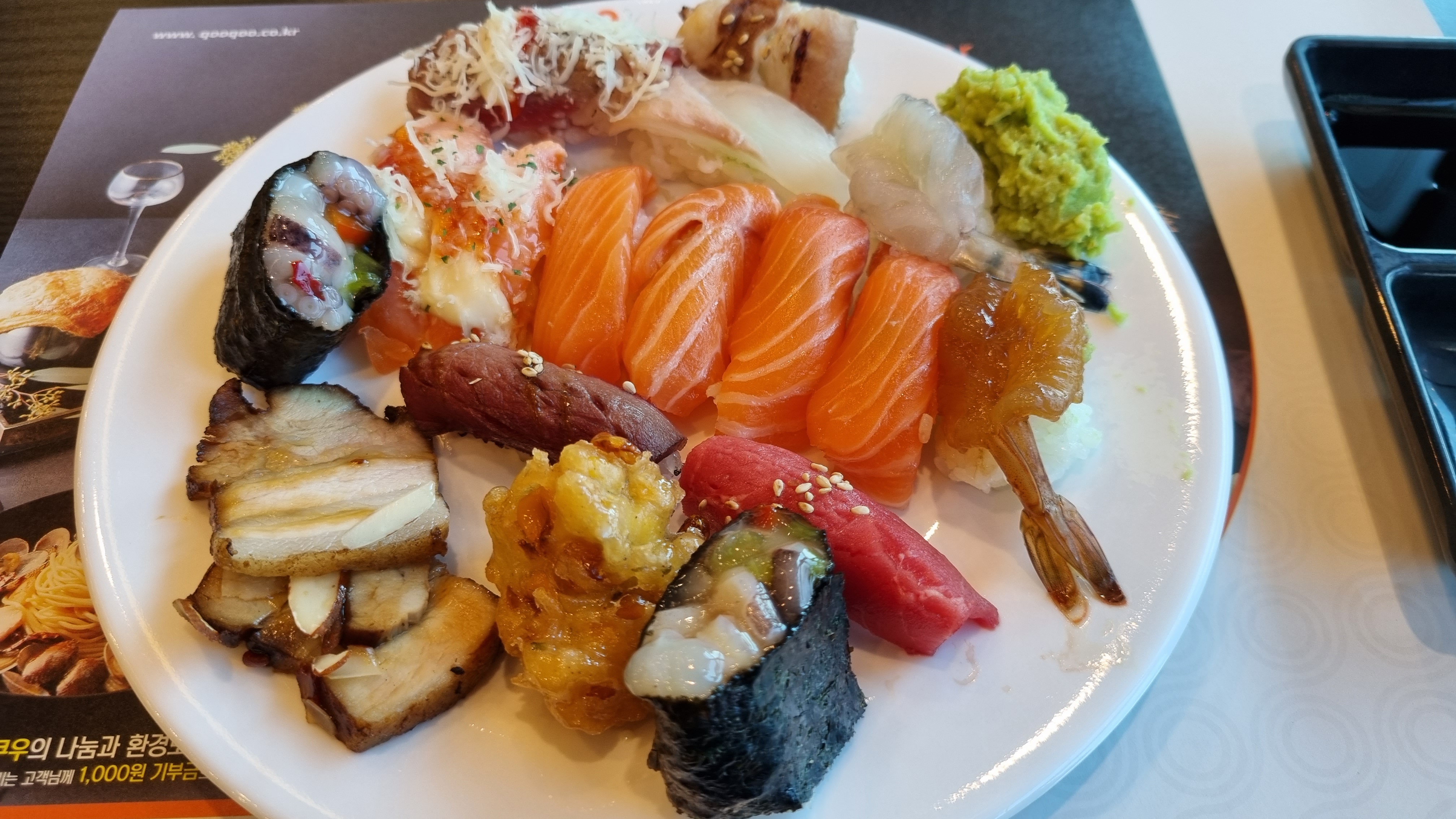 초밥의 밥들이 조금 차갑고 딱딱한 편인 것들이 있어서 실망스러웠음.