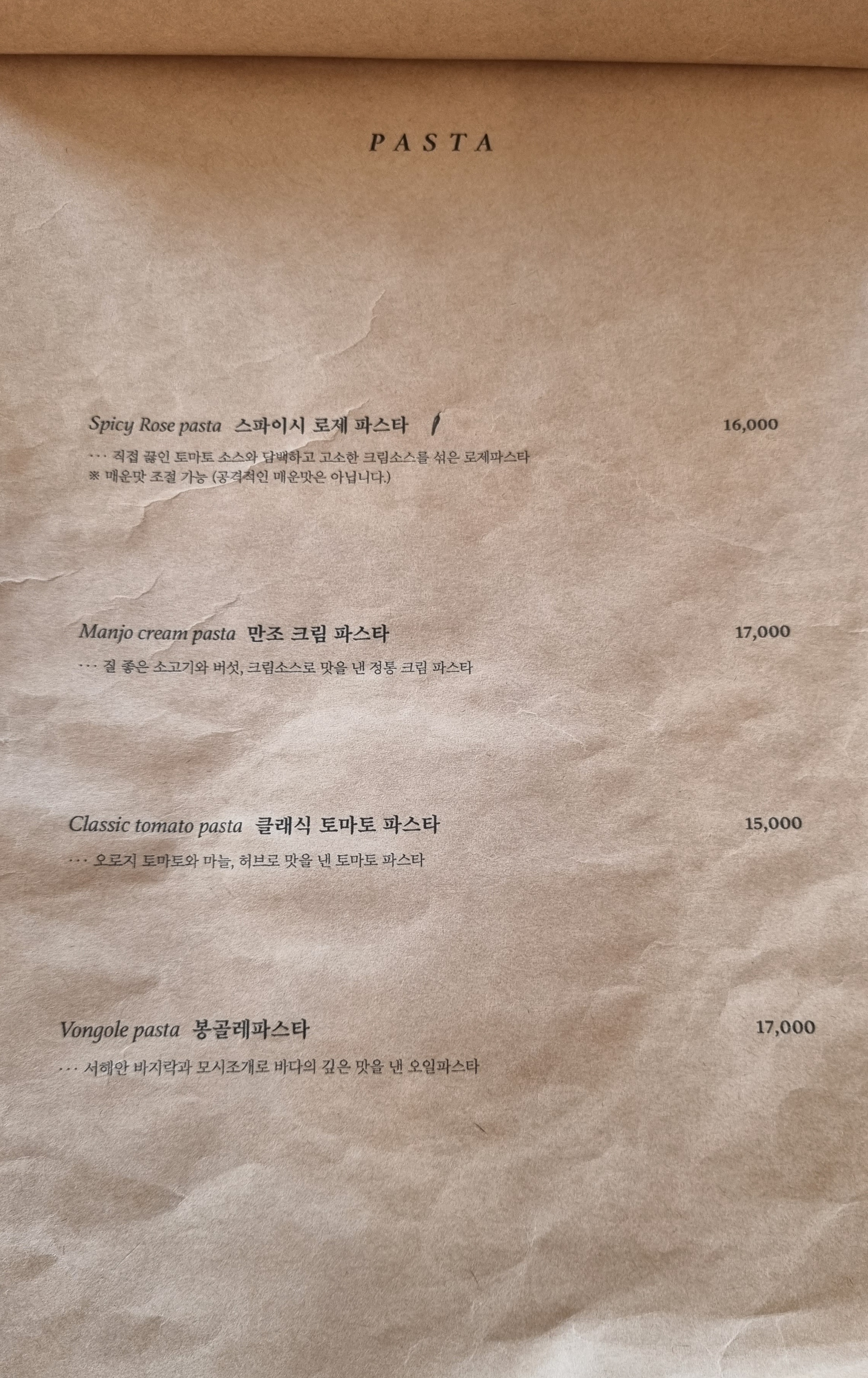여기서는 봉골레 파스타 주문.