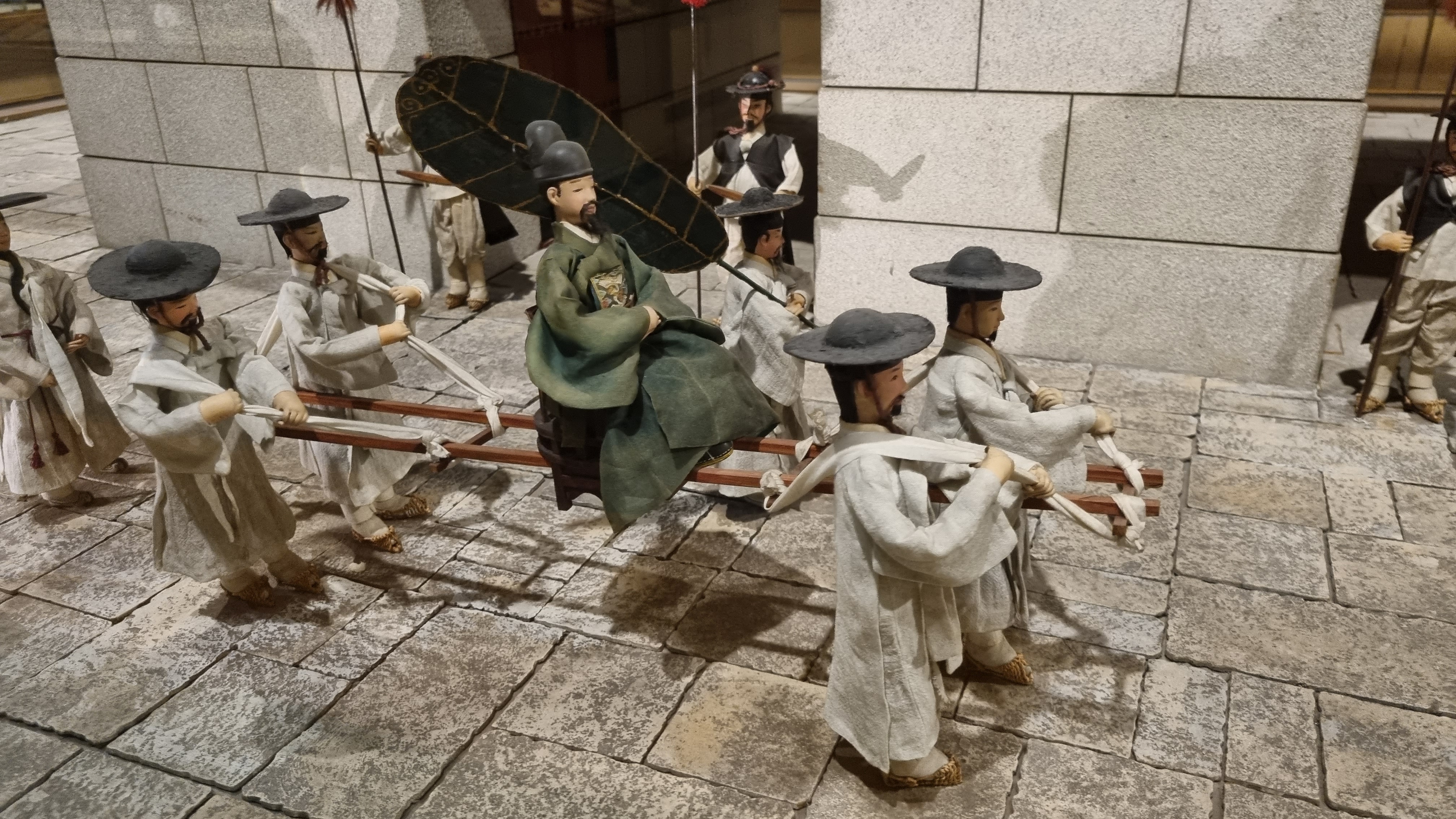 좀 걸어다니지 사람들 힘들게 가마를 타고.. 햇볕 가려주는 사람도 대동하고..