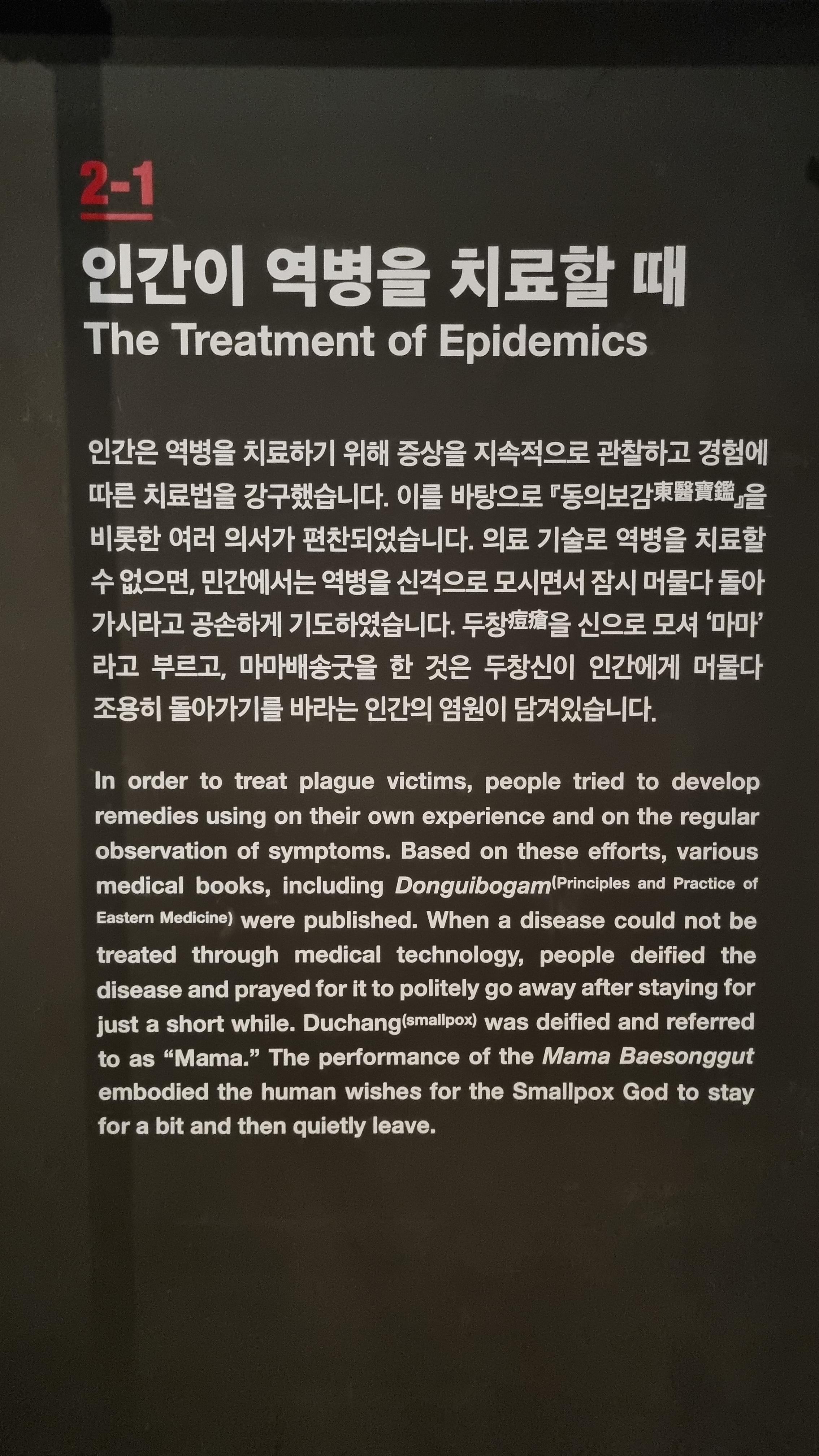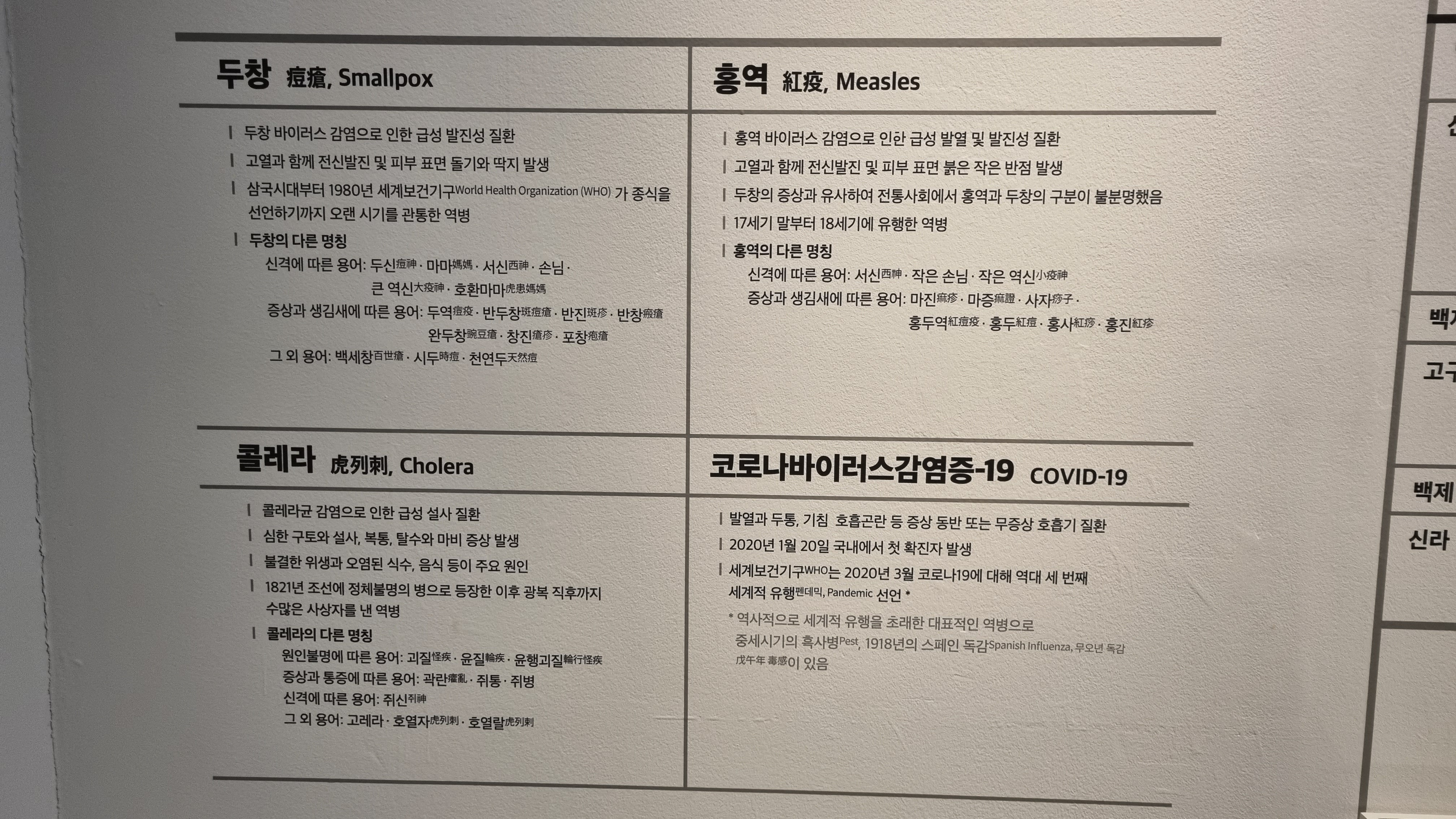 첫번째 섹션은 역병에 대한 역사 기록 전시.