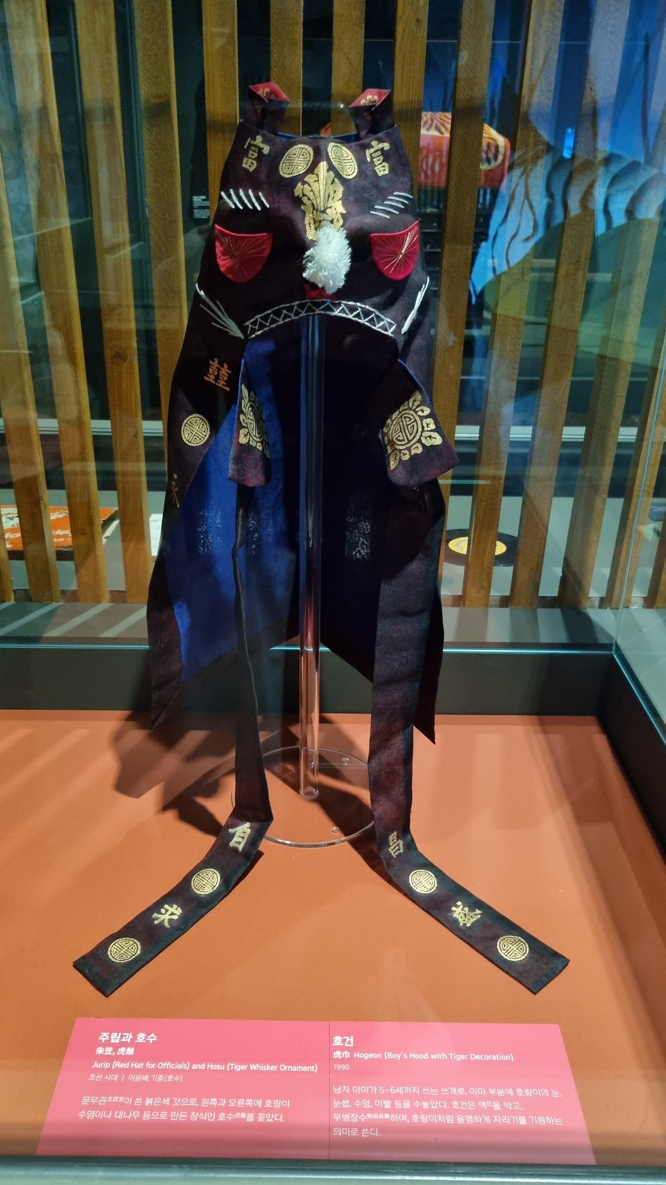 이마 부분에 호랑이 눈, 눈썹, 수염, 이빨 등을 수놓아, 액을 막아주는 의미를 담음.