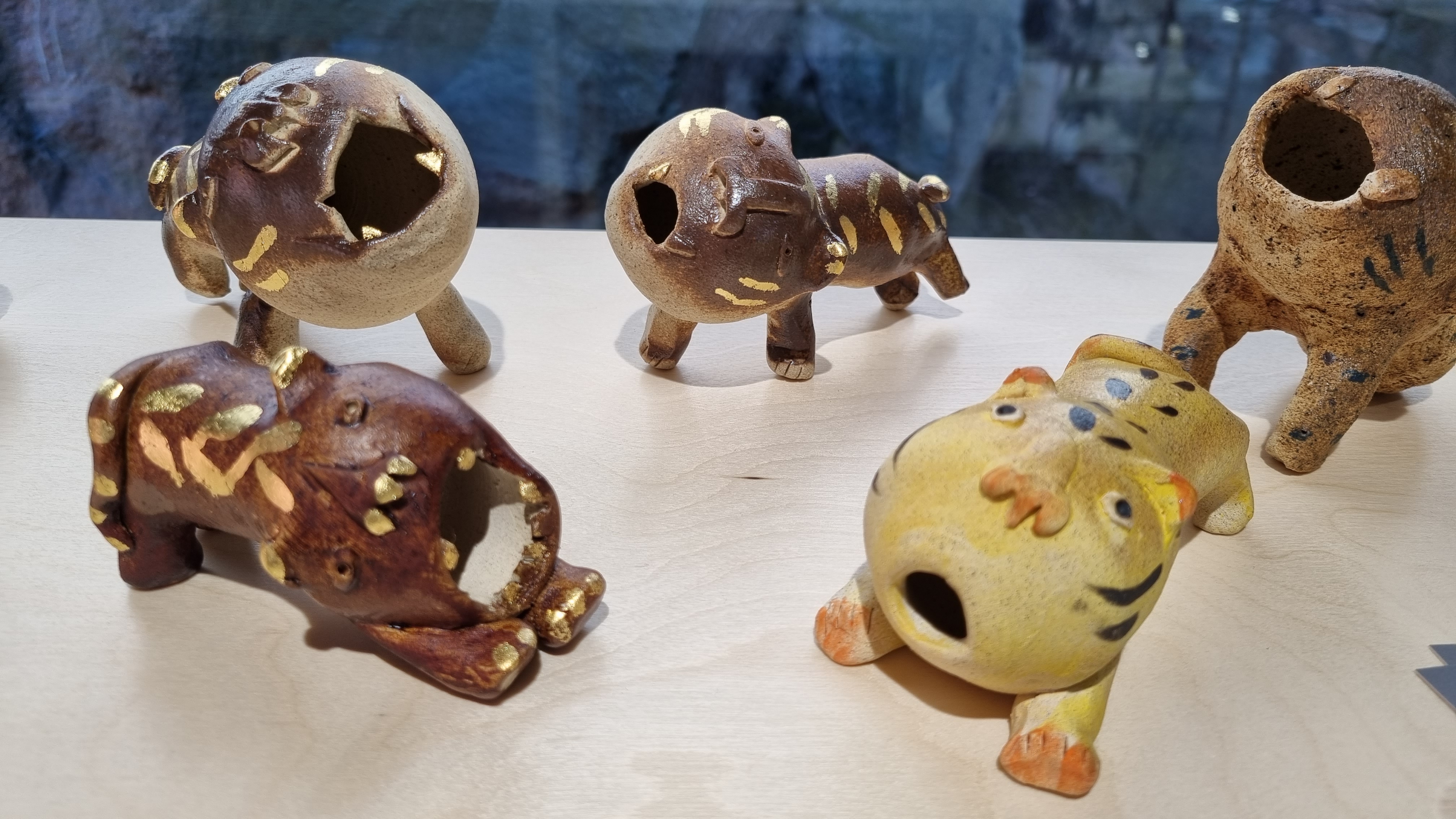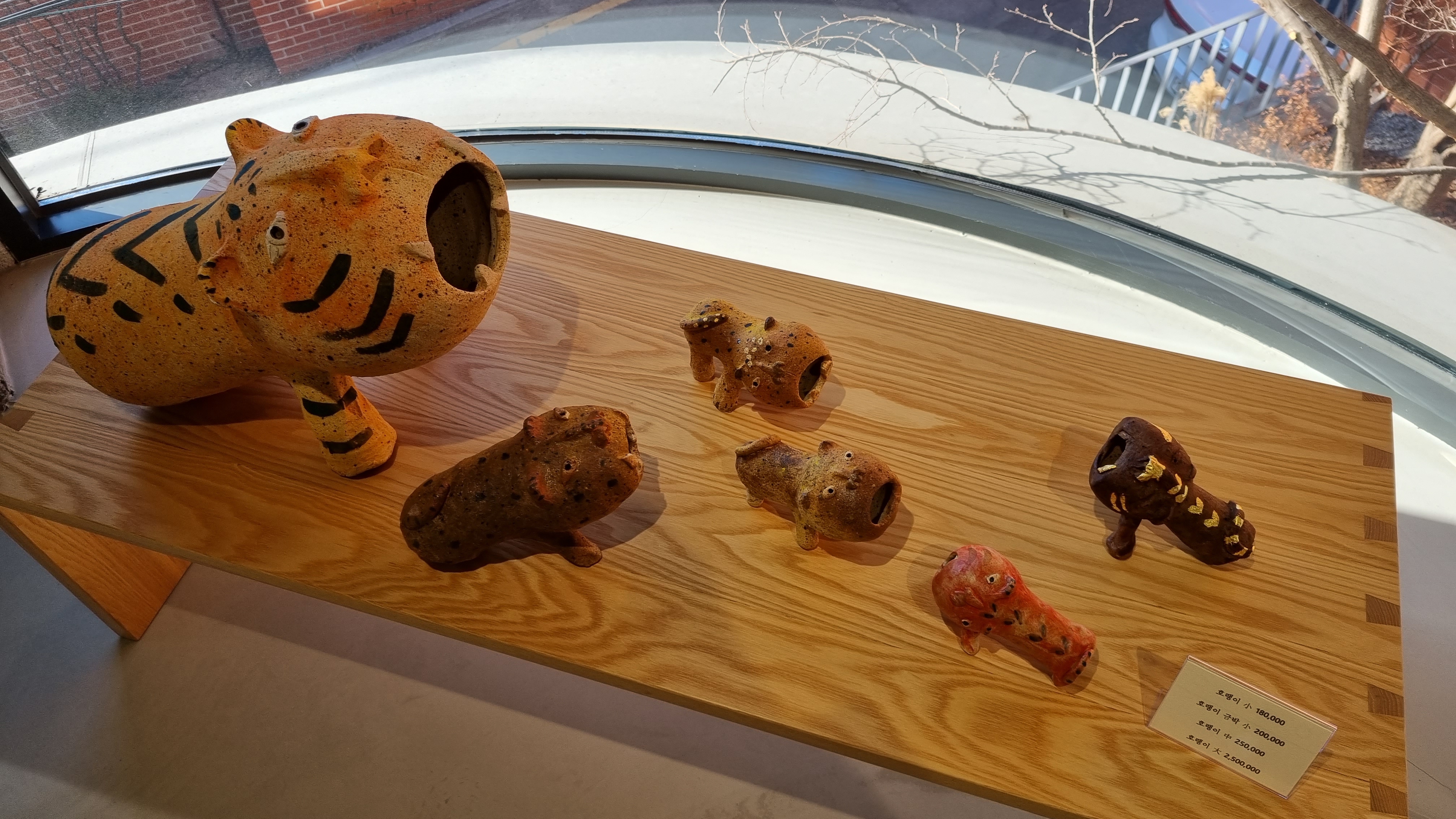 익살스런 호랑이 모양 도자기들.