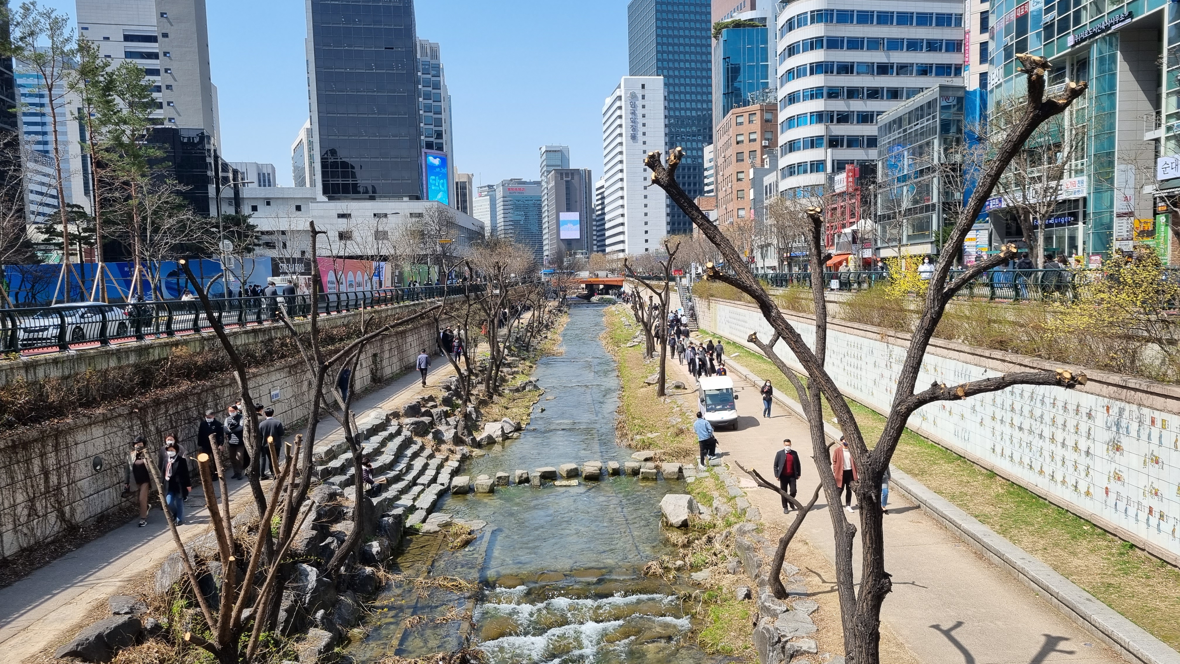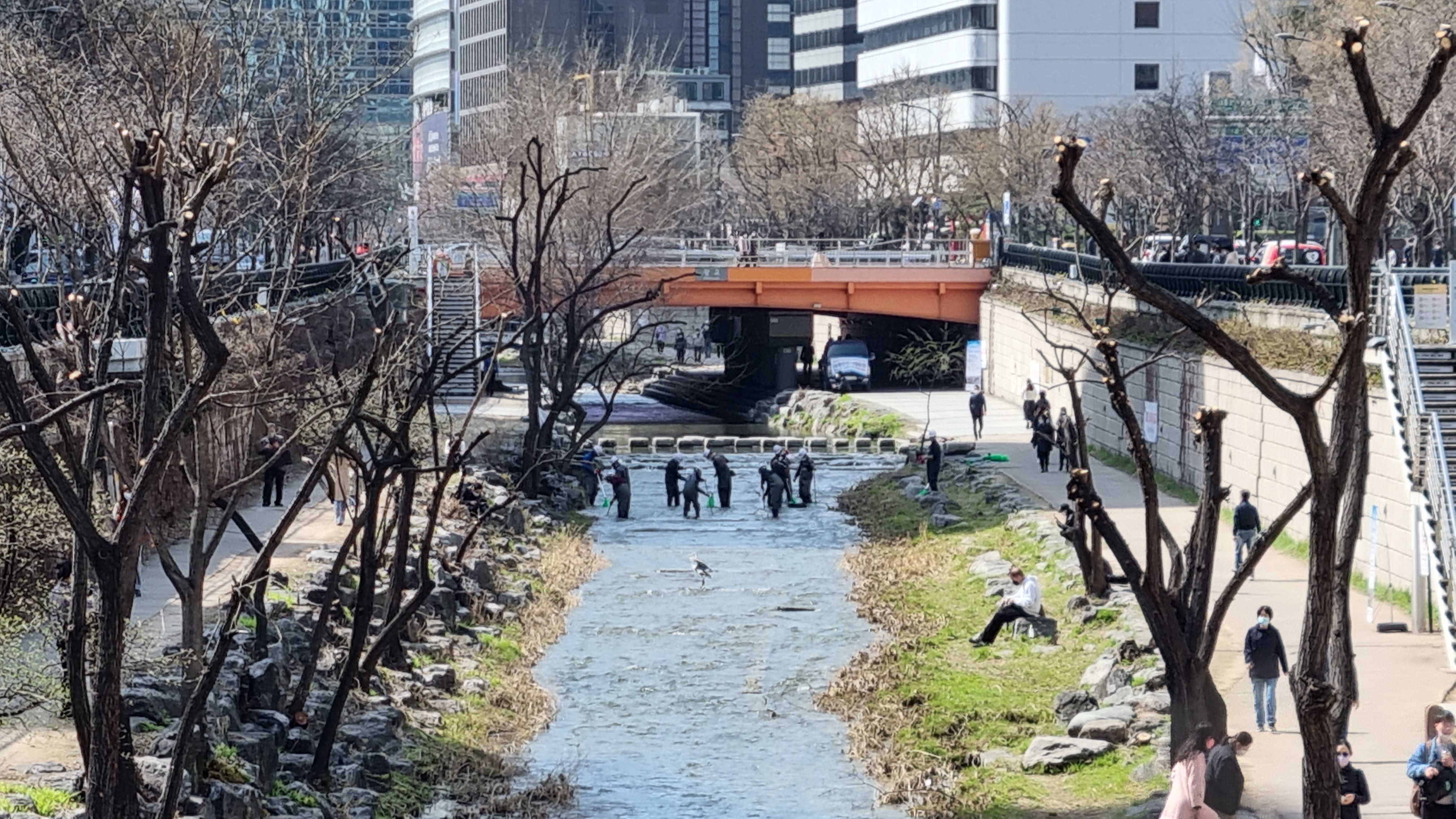 겨울이 끝나고 이발 한번 시원하게 한 청계천.