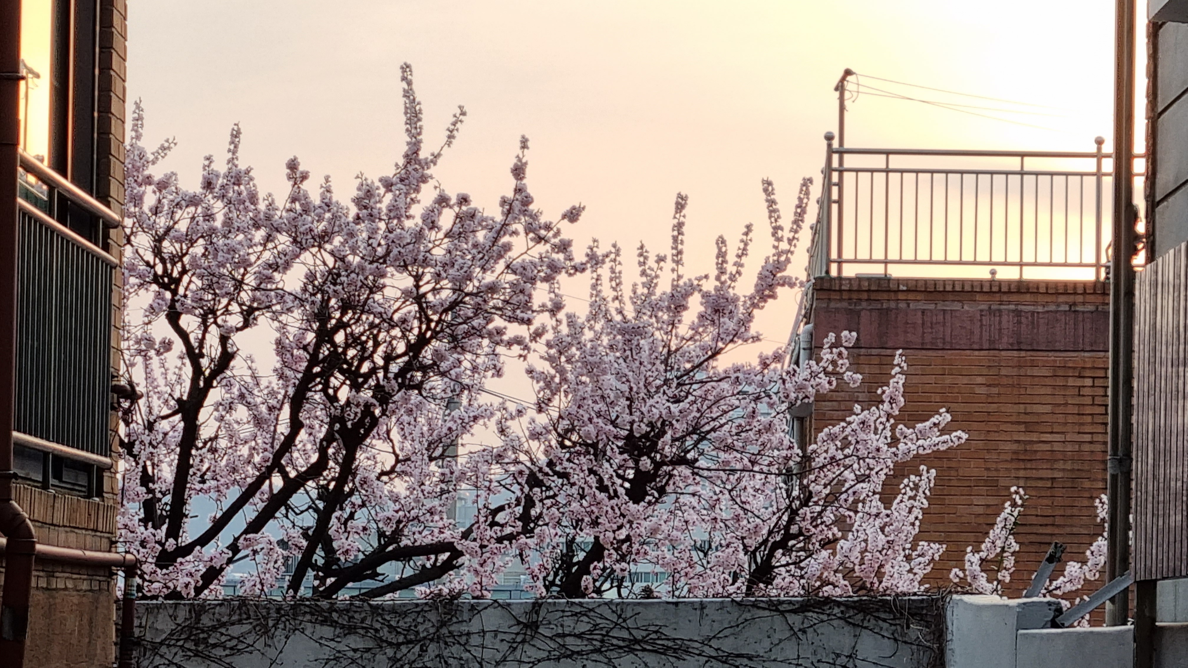 노을과 함께 흐드러지는 분홍빛 벚꽃.