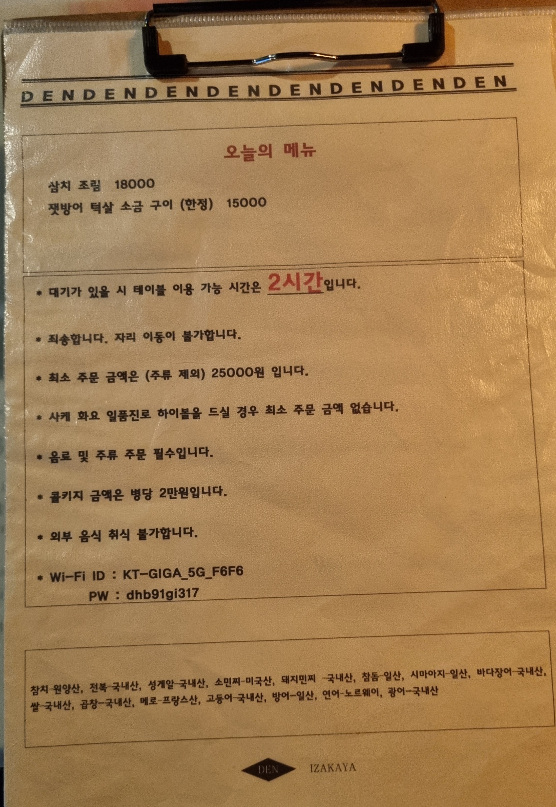 'DEN 사시미' 와 '후토마끼 반줄' 을 시킴.