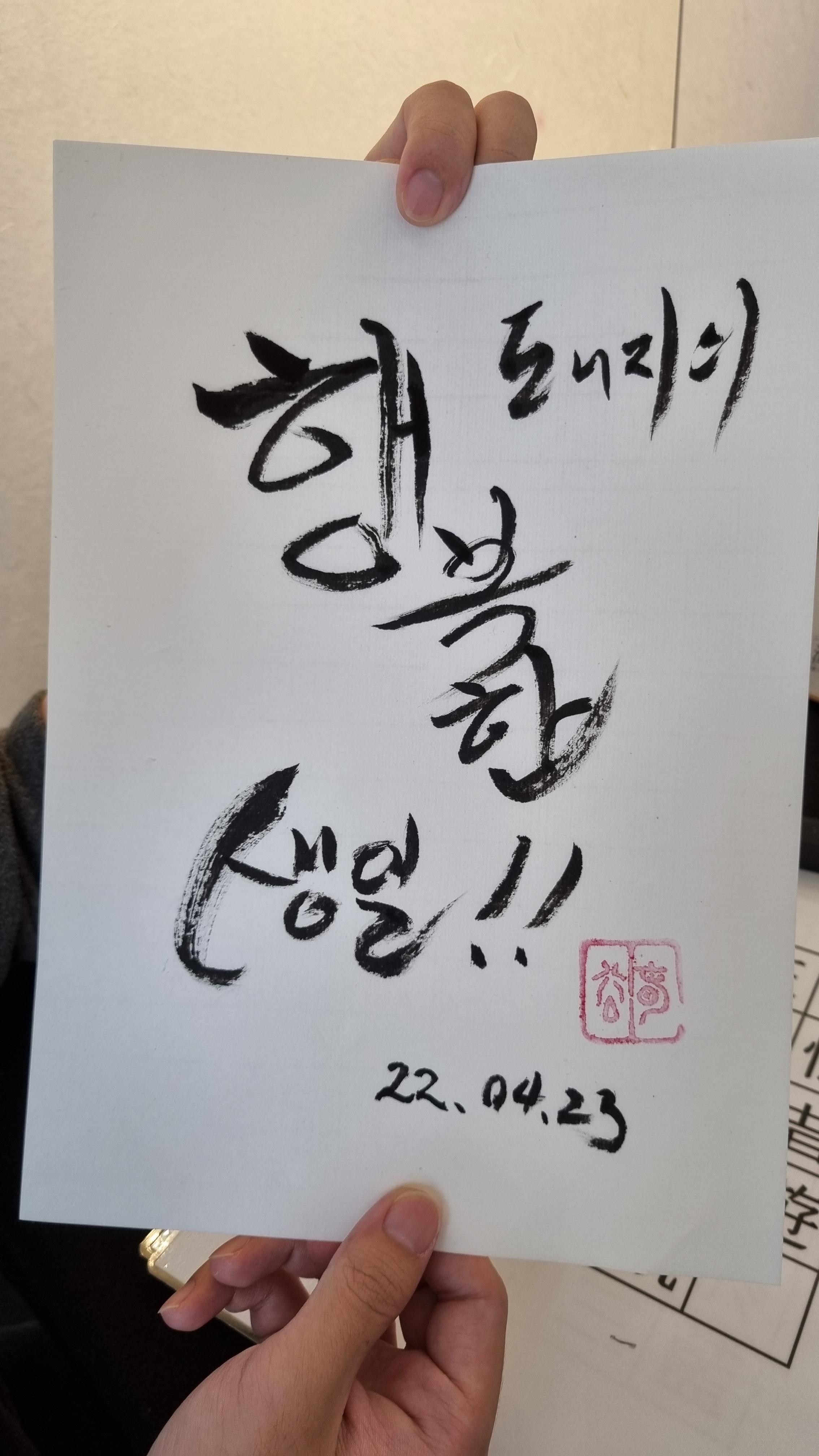 나의 생일을 축하하며 써 준 캘리그래피 글씨.