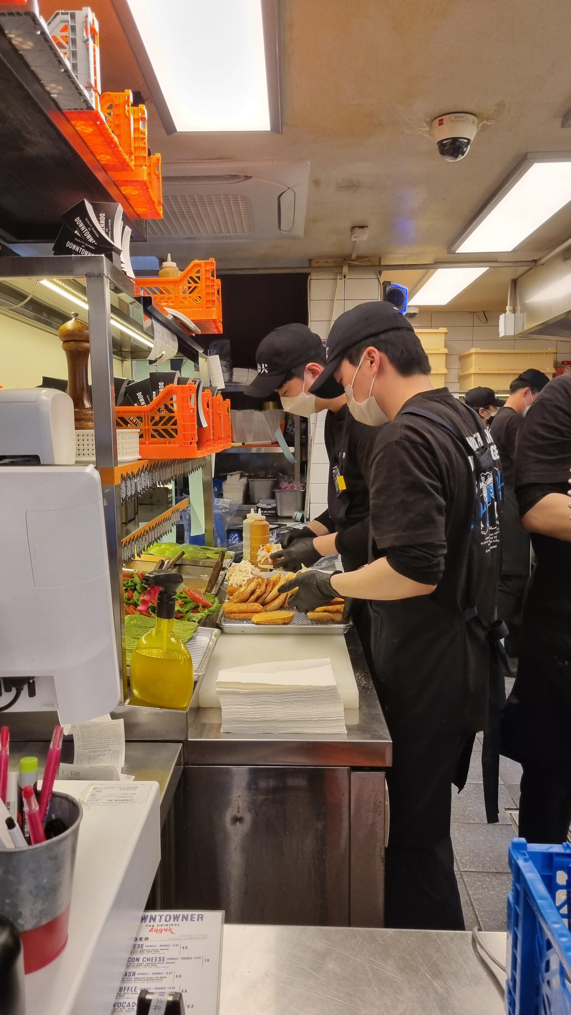 버거 조립하는게 보이는 오픈 주방.