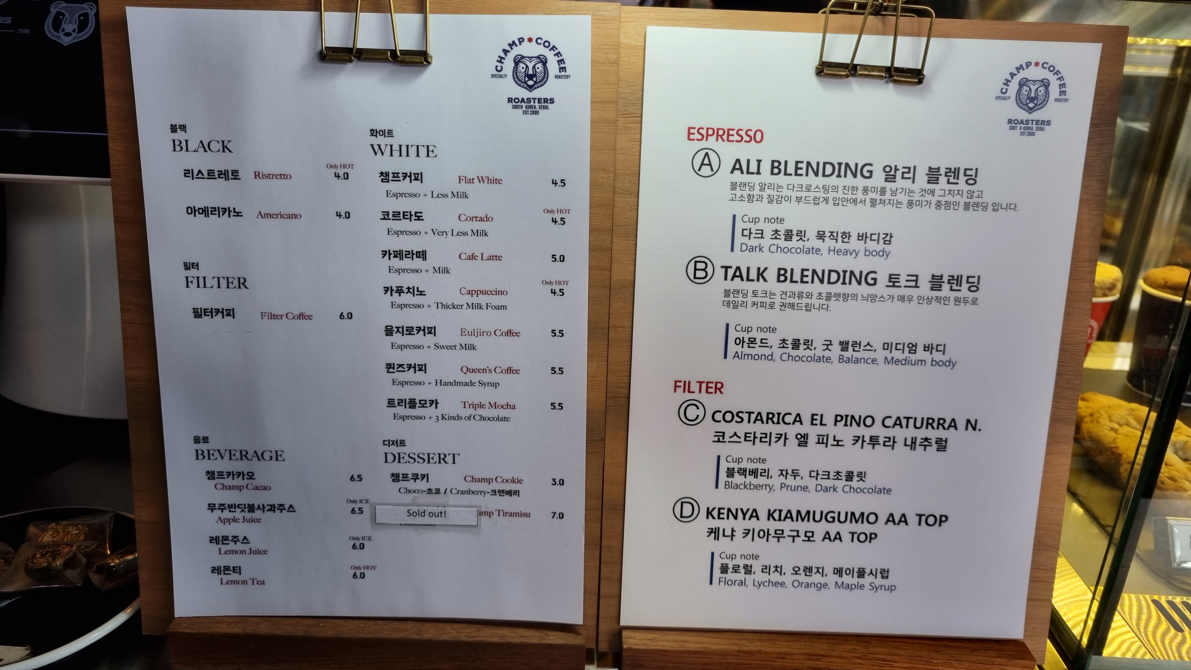 챔프 커피는 이태원 쪽에서 맛있는 커피로 유명한 녀석인데, 물어보니 같은 가게라고 함.