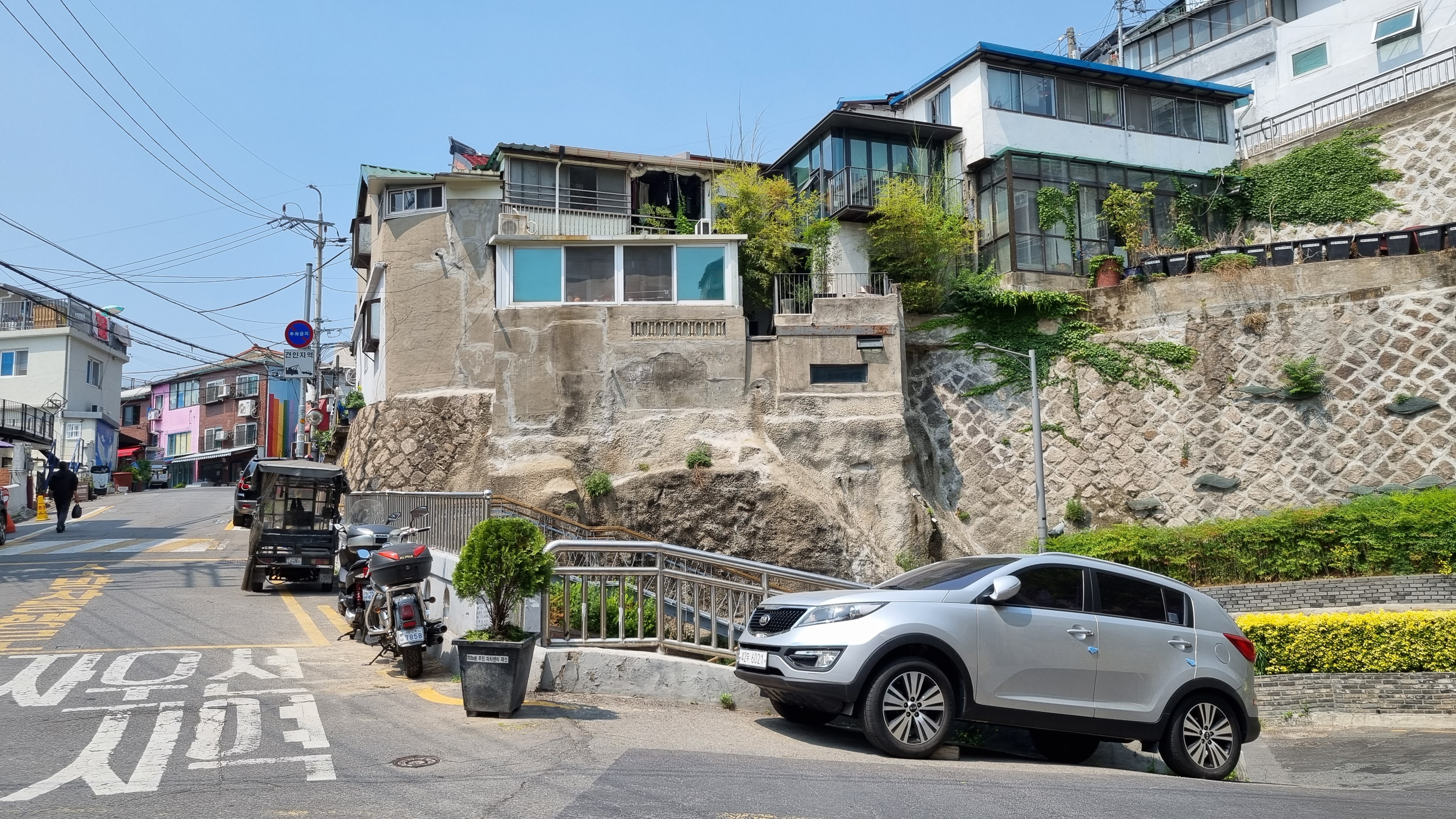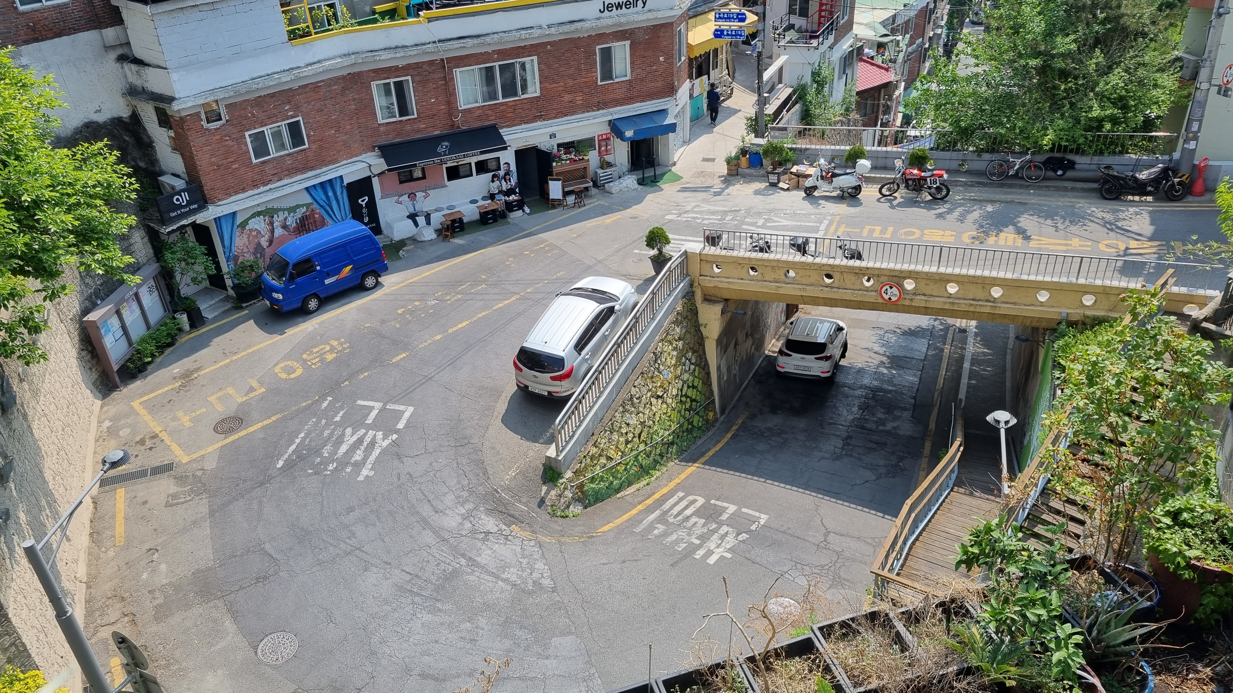 에스프레소 바 오덕새가 자리잡은, 아주 독특한 길 공간.